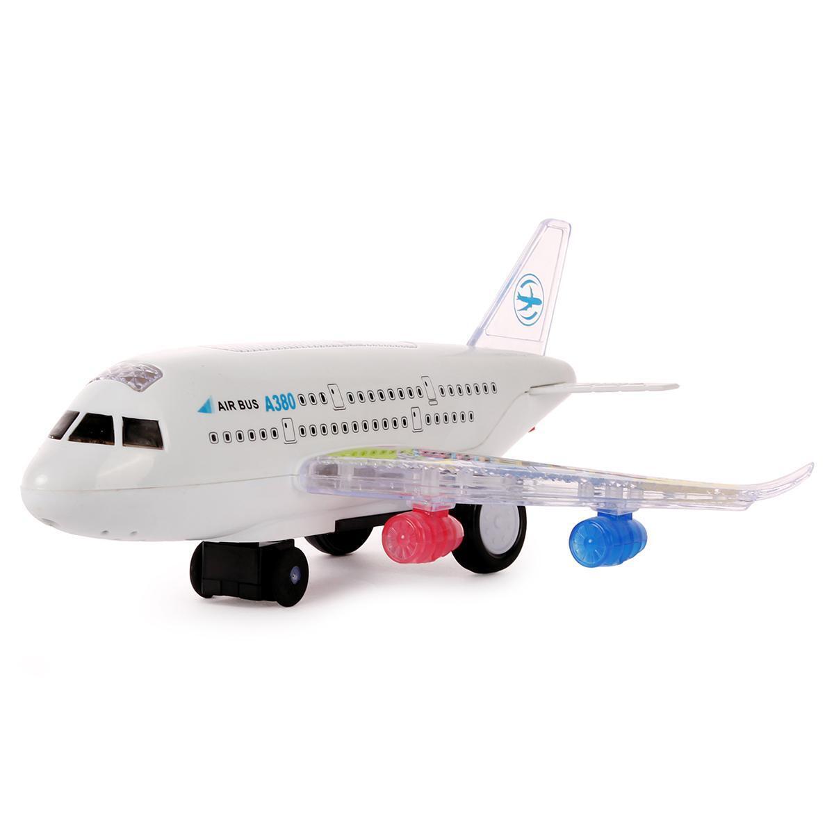 Игрушечный самолёт «A380» с подсветкой и звуковыми эффектами, пластик, белый с сине-красными деталями, 24 см
