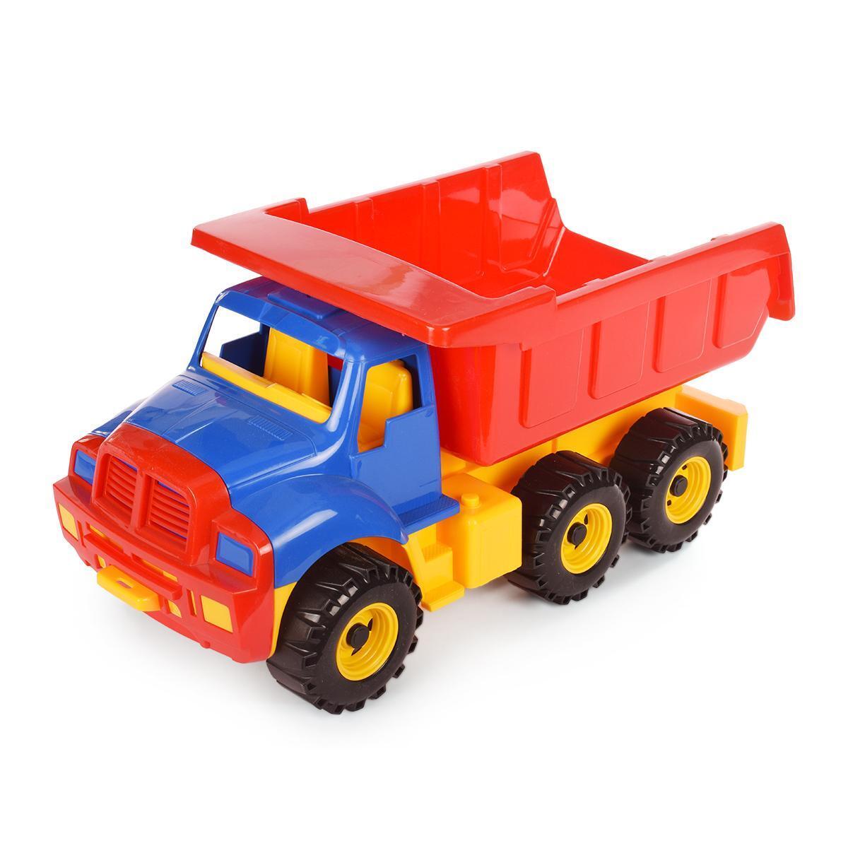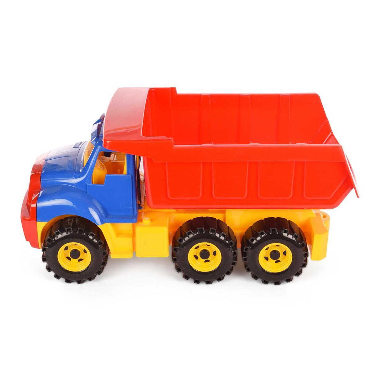 Самосвал подходит для игры как дома, так и на улице. Вместительный кузов легко перевозит игрушки, песок или другие материалы. Механизм подъема кузова работает плавно и надежно, а колеса свободно вращаются.