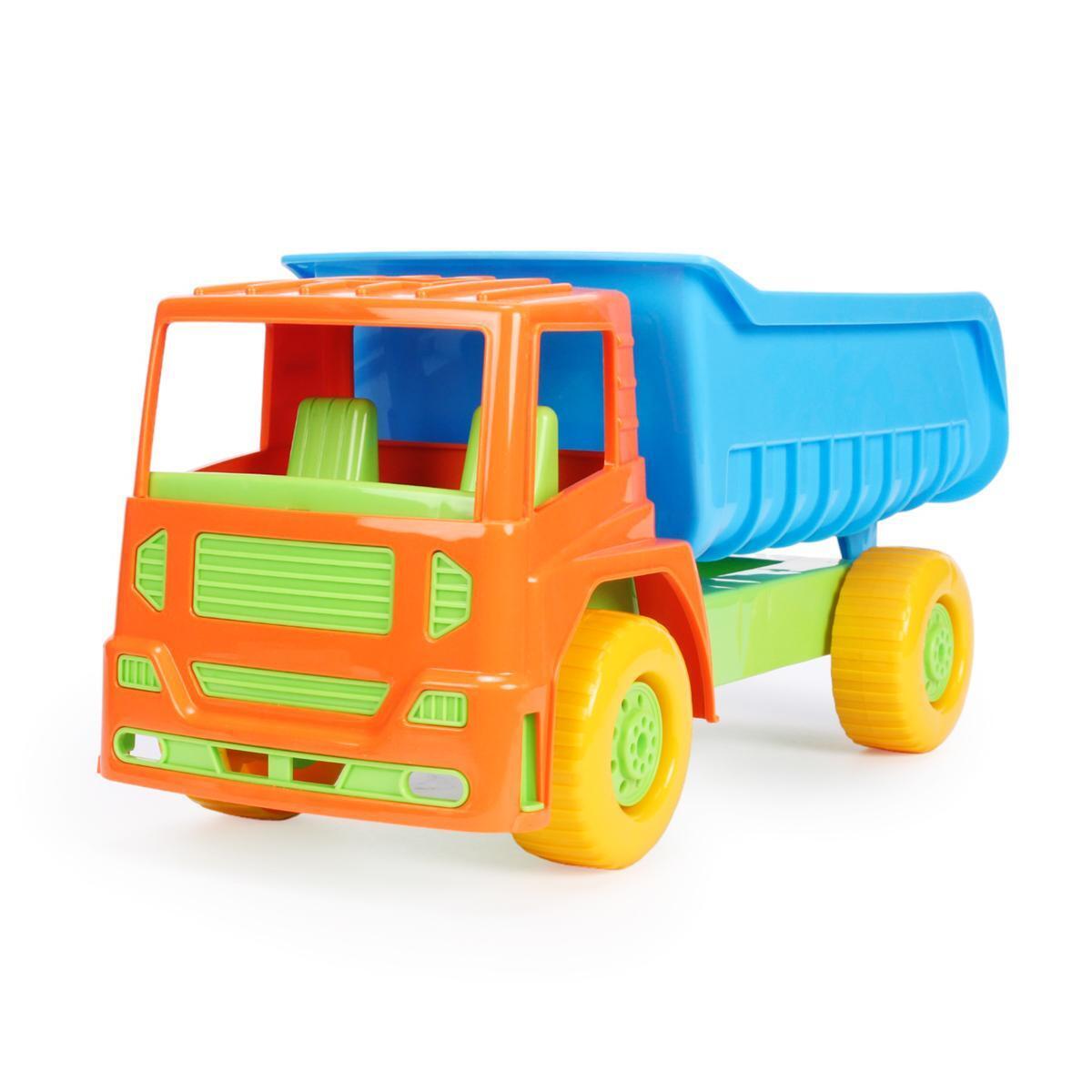 Самосвал 'Олимпик' станет отличным подарком для детей от 3 лет. Игрушка подходит для игры в помещении и на улице, включая песочницу. Яркие цвета (оранжевый, синий, зеленый) и четкая деталировка делают ее особенно привлекательной для малышей.