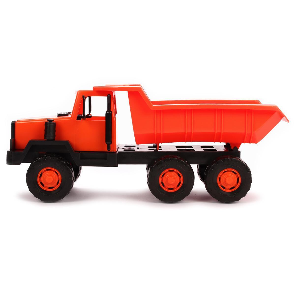 Этот игрушечный самосвал выделяется ярким оранжевым цветом и выполнен из безопасного пластика, что делает его идеальным выбором для детей в возрасте от 3 лет и старше. Благодаря реалистичному дизайну с открываемым кузовом и шести колесами с рифленым протектором, модель стимулирует воображение и развивает моторику у малышей.