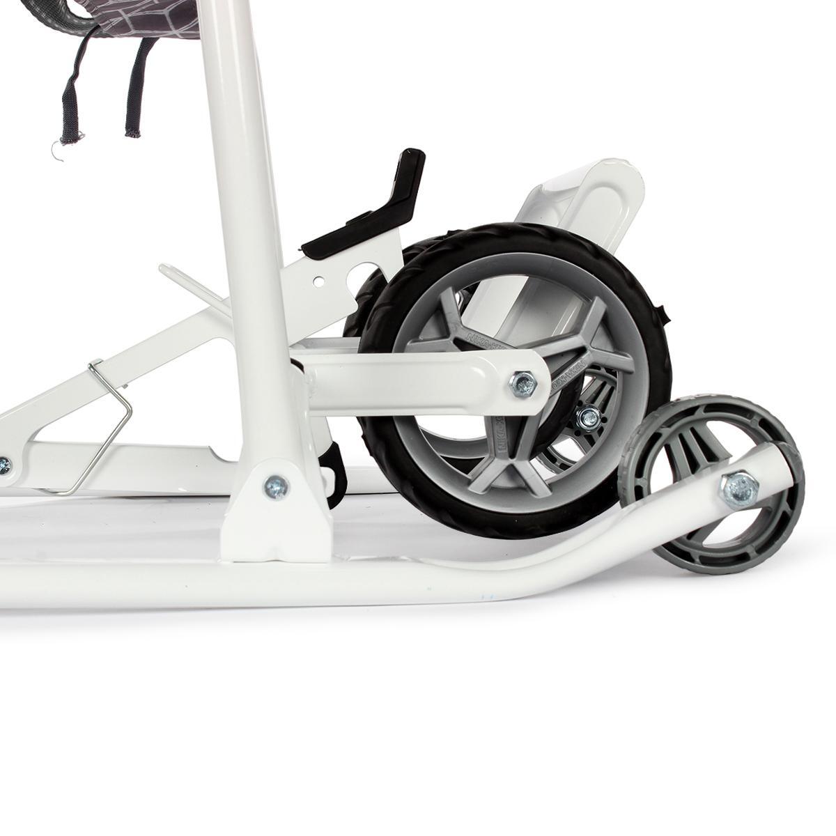 Санки-коляска "Наши Детки 3-1К" — это идеальное решение для заботливых родителей, стремящихся обеспечить комфорт и безопасность малыша во время зимних прогулок. Быстрый и лёгкий процесс транспортировки сделает каждую прогулку приятным опытом для вас обоих. Удобный механизм изменения полозьев на колеса позволяет использовать коляску не только на снегу, но и на асфальте, что существенно экономит ваше время и силы.