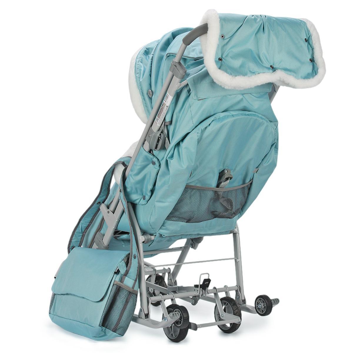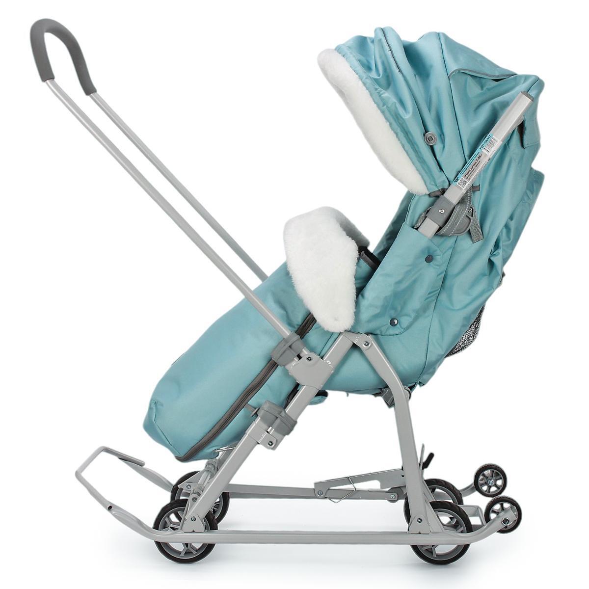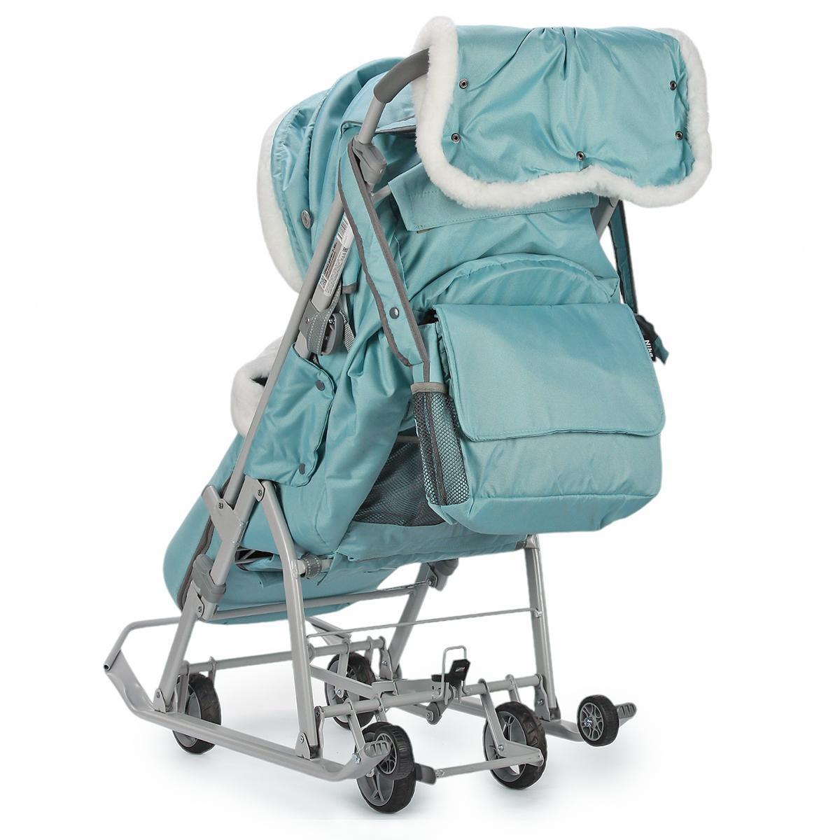Санки-коляска "Ника детям 7-5", мятный/серый, 105*45.5*103см, металлический каркас
