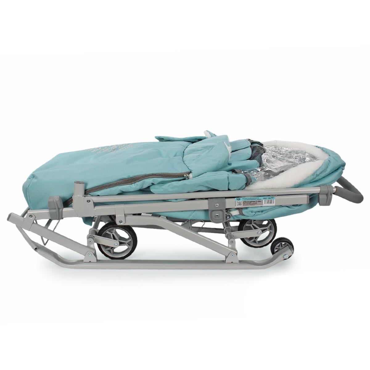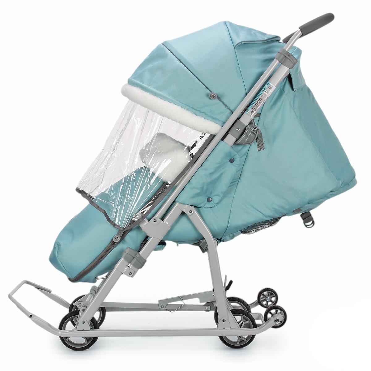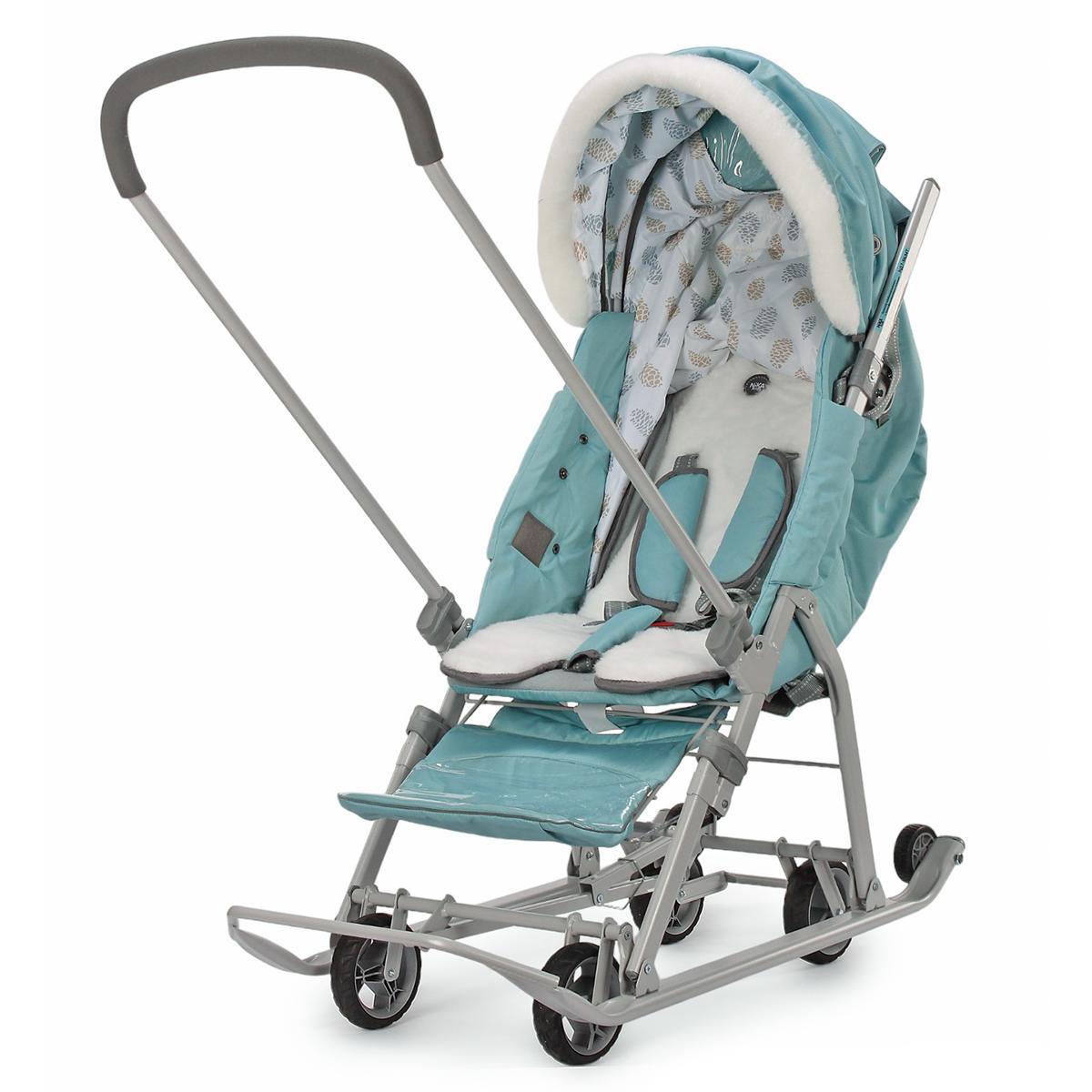 Санки-коляска "Ника детям 7-5", мятный/серый, 105*45.5*103см, металлический каркас