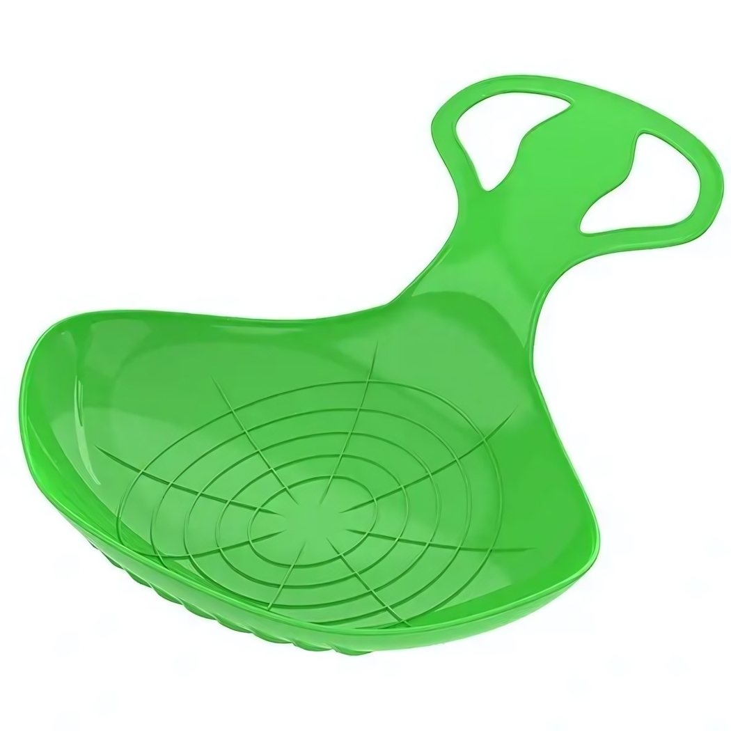 Размеры изделия – 65х42х10 см. Зеленый цвет добавляет яркости на фоне снега. Отгружается один товар, цвет определяется случайным образом только при условии наличия ассортимента, но в данном варианте указан зеленый. Конструктивно продуманная форма и удобная ручка позволяют комфортно удерживать ледянку даже на высокой скорости, а материал изделия сохраняет форму при низких температурах.