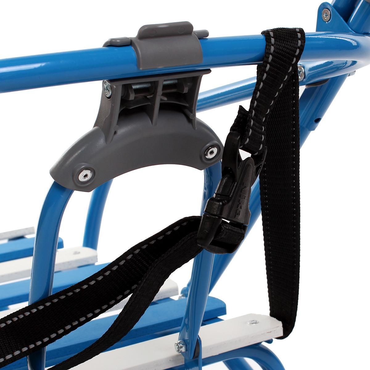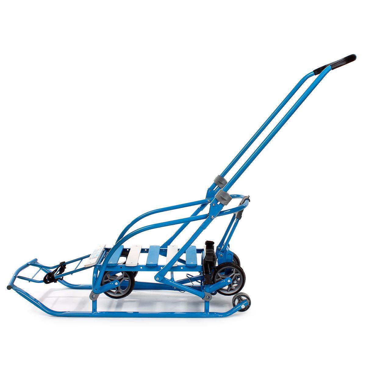 Рекомендуем для: ежедневных прогулок в парках, походов в торговые центры, поездок на общественном транспорте. Габариты в рабочем состоянии: 120×38×48 см. Вес 7 кг позволяет легко переносить санки одной рукой.