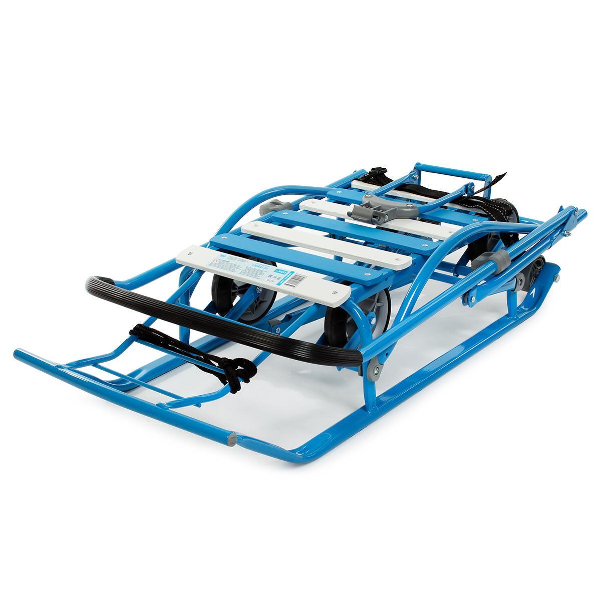 Больше не нужно носить санки на руках — катите их перед собой как коляску или тяните за шнур. Компактные размеры в сложенном виде (92×44×20 см) экономят место в багажнике. Плоские полозья гарантируют плавное скольжение, а усиленные колёса выдерживают нагрузки до 25 кг.