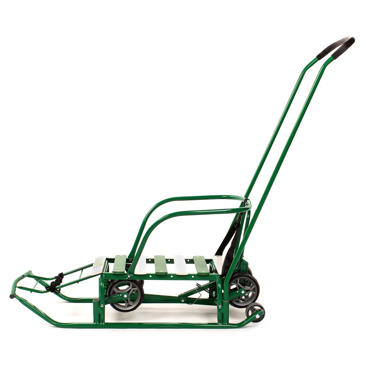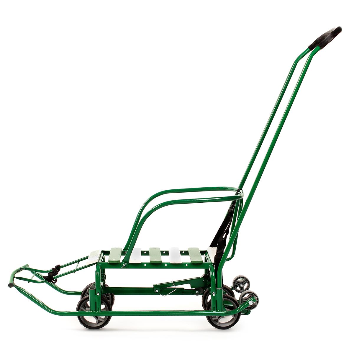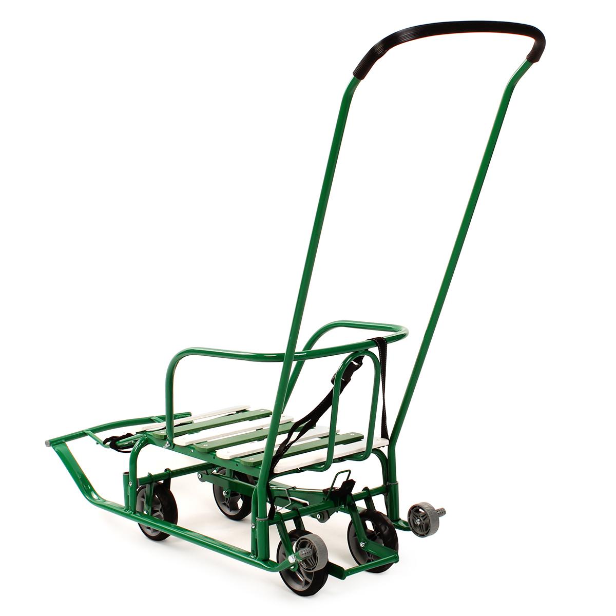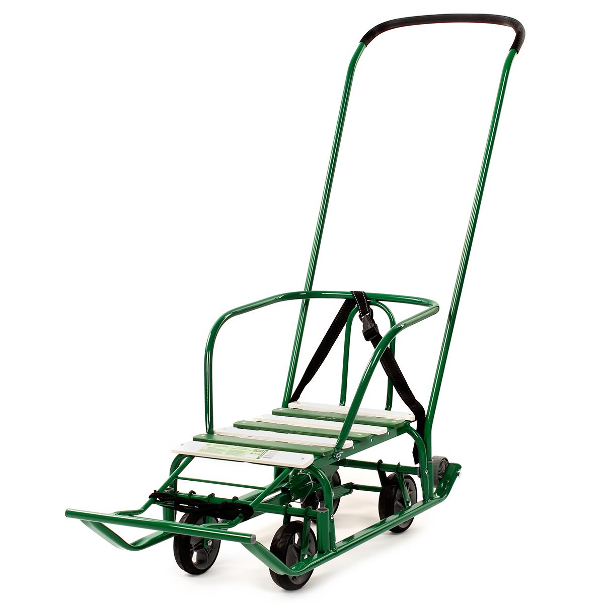 Главная выгода: надежные, удобные и универсальные санки с механизмом выдвижных колесных шасси для комфортных зимних прогулок и катания.