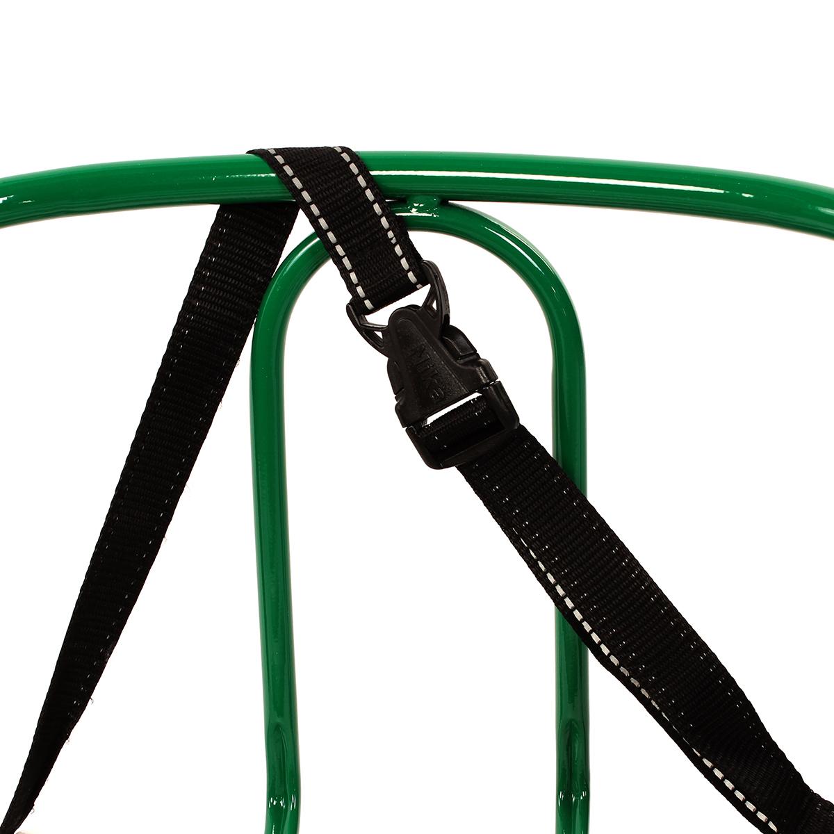 Практические детали: размеры в сложенном виде — 86,5*38,5*41 см, длина сиденья — 46 см, материал — металл и рейки из натуральной древесины, грузоподъемность — до 25 кг, выполнены в ярком зеленом цвете, Россия.
