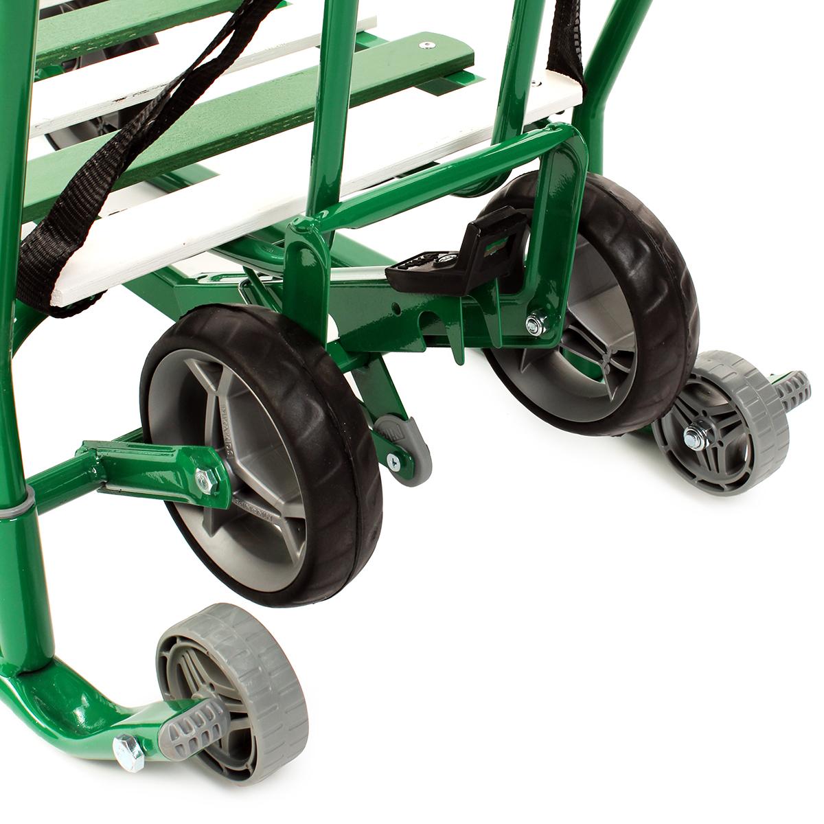Преимущества: прочный металлический каркас с антикоррозийным покрытием обеспечивает долговечность, механизм смены колес делает управление комфортным, а колеса на полозьях позволяют легко скользить по снегу и внутри помещений.