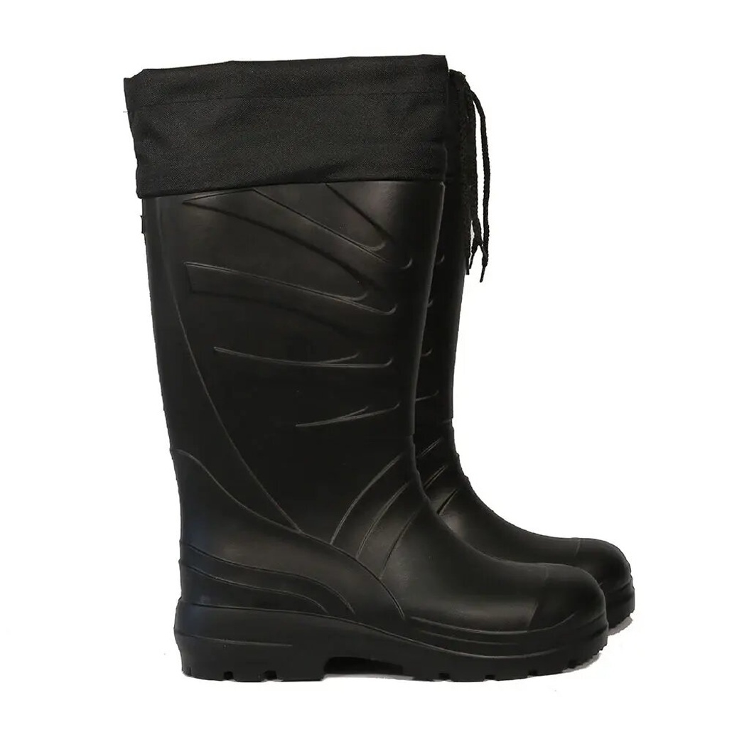 Цвет — черный, размер 44. Верхняя часть сапог выполнена из прочного текстиля с утяжкой для защиты от осадков. Основная часть из качественного ЭВА сохраняет тепло и гарантирует длительный срок службы. Протекторная подошва обеспечивает устойчивость даже на скользкой поверхности.