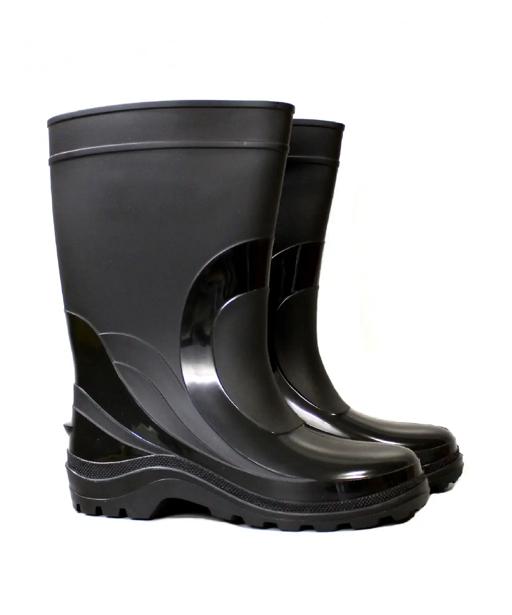 Эти сапоги из ПВХ станут вашим незаменимым помощником в сырую погоду. Их черный лаконичный дизайн сочетается с практичностью и долговечностью материала.
