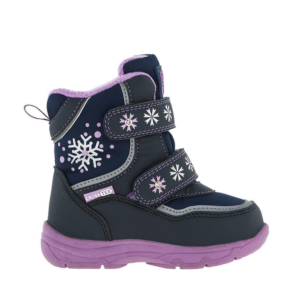 Сапоги зимние детские "Kakadu", темно-синие с фиолетовым, размер 27, с липучками и защитой Cross.Tex