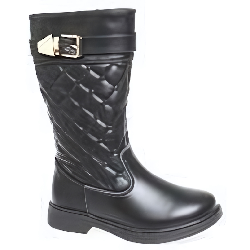 Сапоги детские 'Сказка', размер 28, черные, искусственная кожа, стеганый узор, пряжка