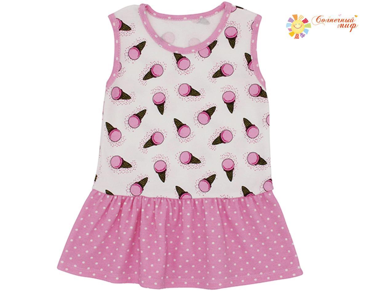 Сарафан детский "Солнечный миф" с принтом мороженого, интерлок 100% хлопок, р.80