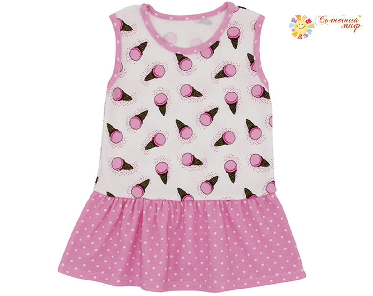 Идеальный выбор для летних прогулок! Сарафан из мягкого хлопка подарит комфорт даже в жаркую погоду, а яркий дизайн с мороженым и горошком поднимет настроение вашей малышке.