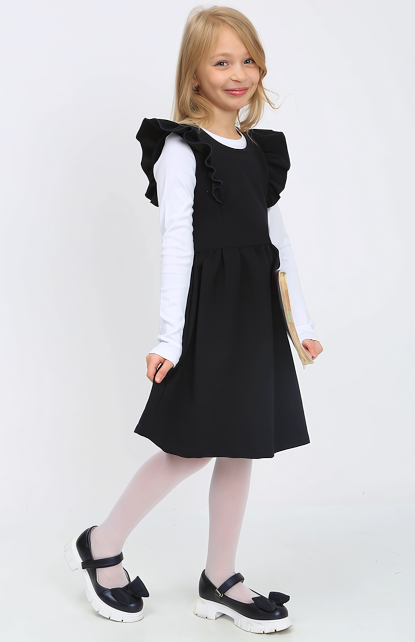 Сарафан подходит для девочек школьного возраста и идеально вписывается в школьный дресс-код. Его можно сочетать с различными блузками и аксессуарами, создавая стильные образы для учебы и мероприятий. Благодаря прочной ткани, сарафан не деформируется при носке и легко стирается, что экономит ваше время на уход за одеждой.