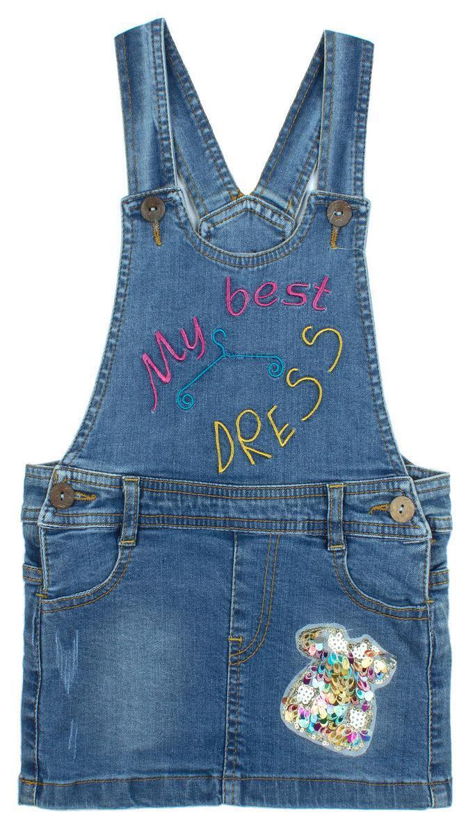 Подарите своей маленькой моднице комфорт и стиль с этим очаровательным джинсовым сарафаном Bonito. Светло-синий цвет и милая вышивка "My best DRESS" создают неповторимый образ, который обязательно понравится вашей дочке.