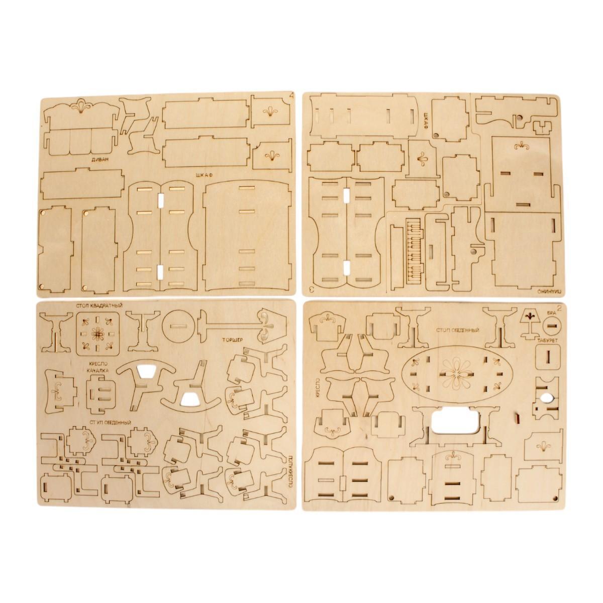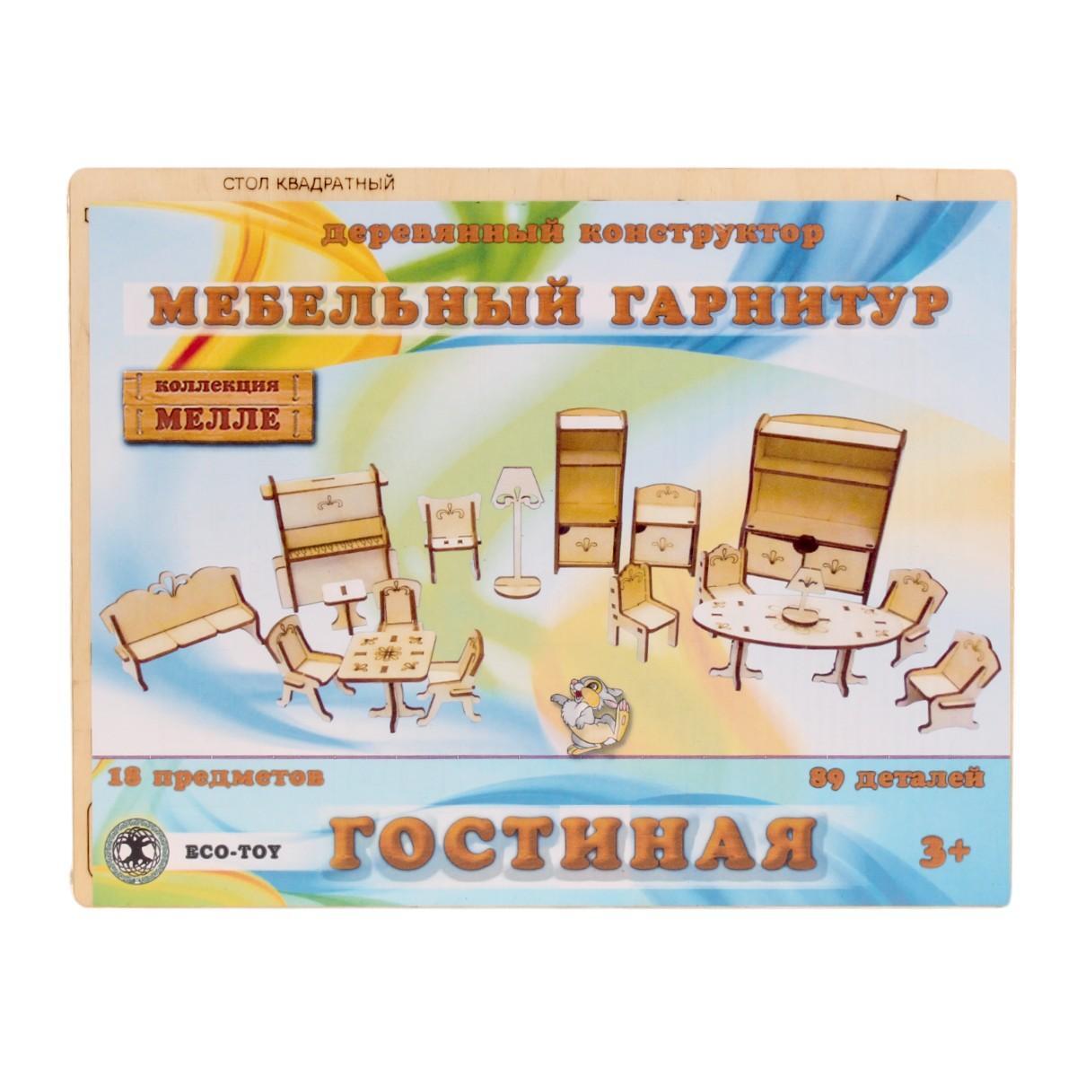Конструктор деревянный "Мелле" 89 деталей, мебель гостиной, 3+