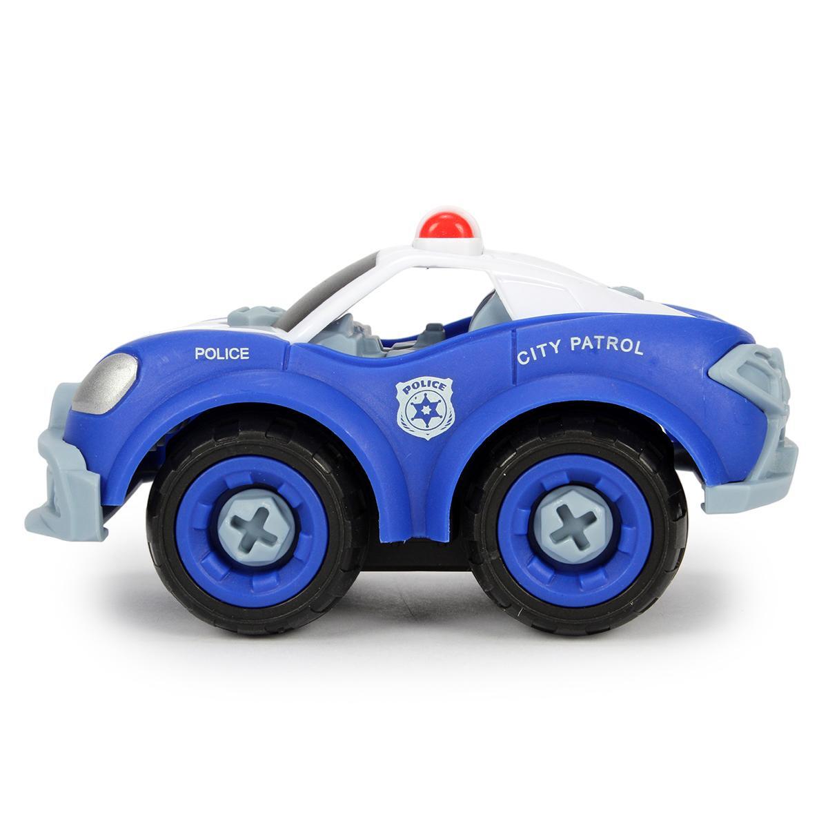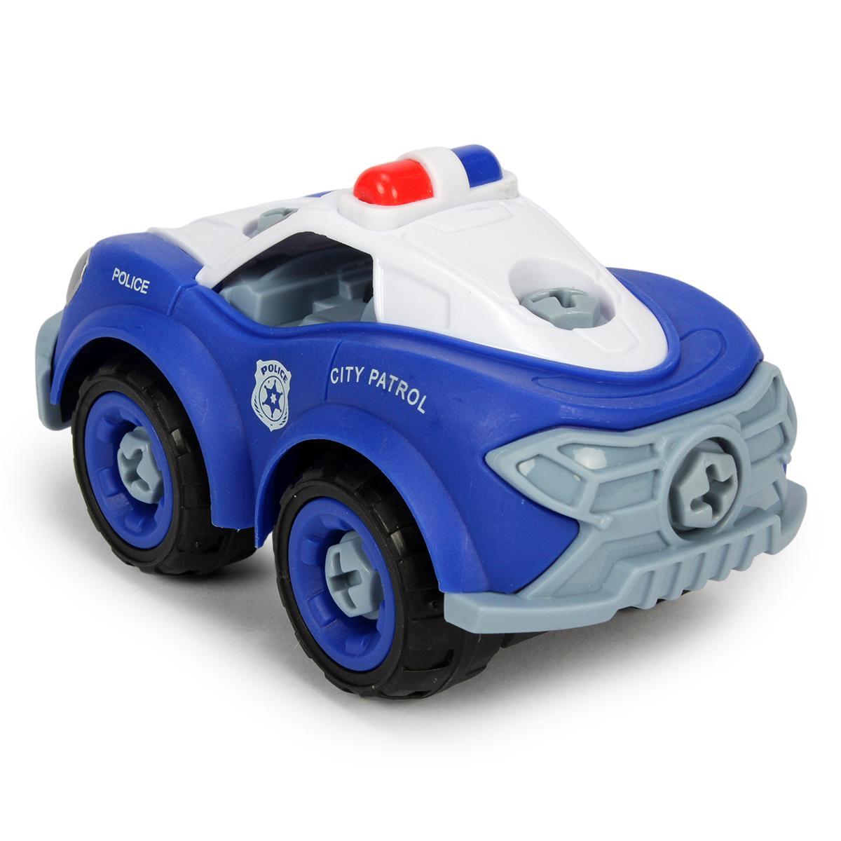 Преимущества данной модели включают простоту сборки, красочный дизайн с изображением полицейского автомобиля, а также возможность улучшать навыки моторику и воображение. Размер автомобиля — около 12 см в длину, что делает его компактным и удобным для игр дома и в дороге. Пластик высокого качества обеспечивает прочность и долговечность, а яркое оформление стимулирует интерес к обучению и творчеству.