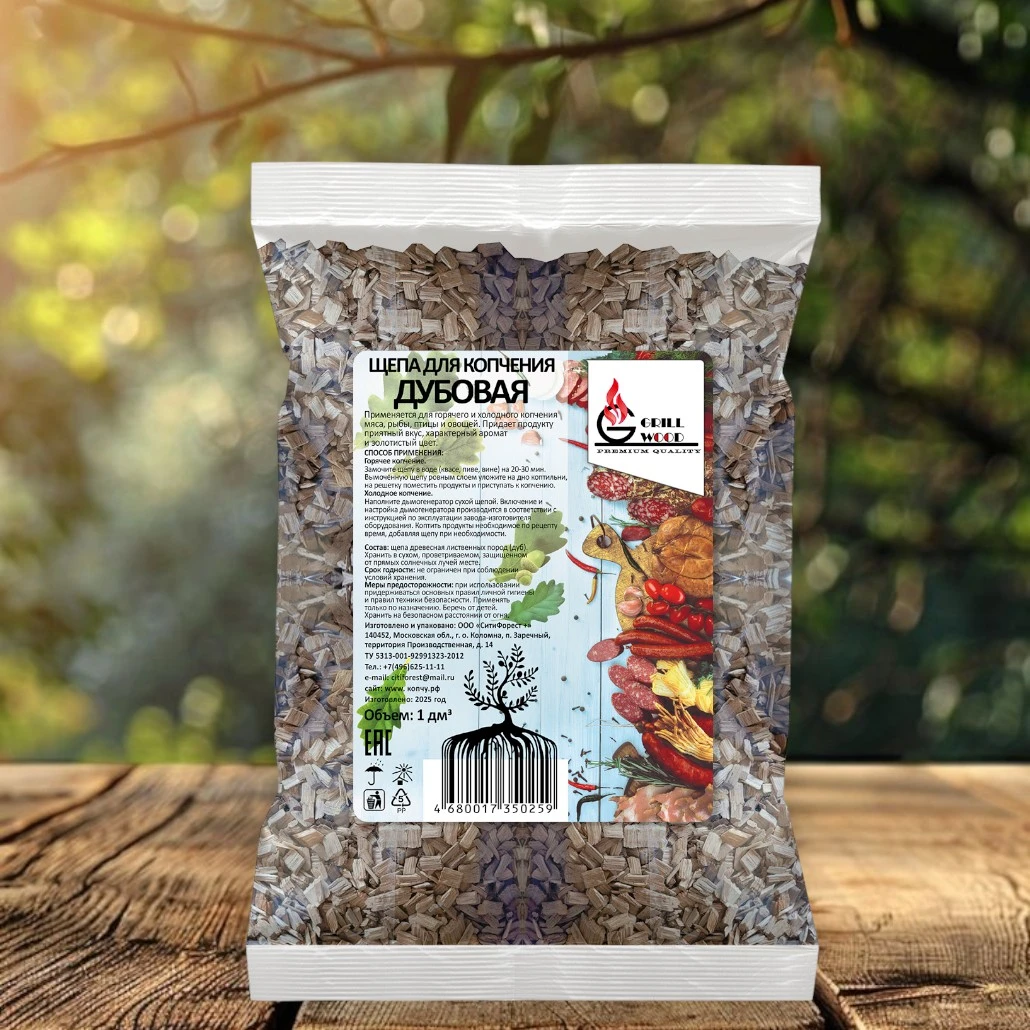 Щепа для копчения дубовая, 2 дм³ (420 г), для мяса, рыбы, птицы и овощей, придает насыщенный вкус и аромат