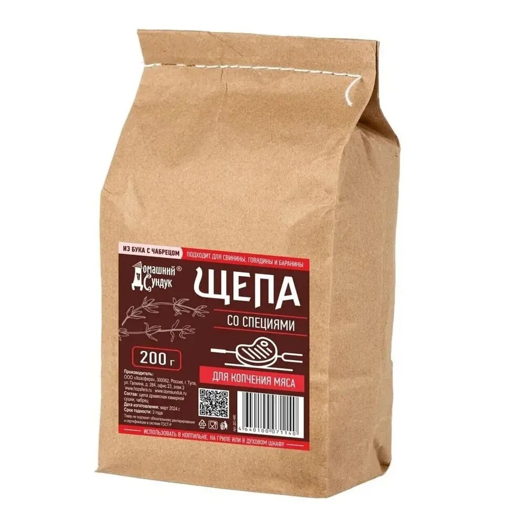 Упаковка: крафт-пакет с защитой от влаги и посторонних запахов. Вес: 200г — оптимальный объем для 2-3 сеансов копчения. Рекомендуем для свинины, курицы, рыбы и овощей. Произведено в России с контролем качества на каждом этапе.