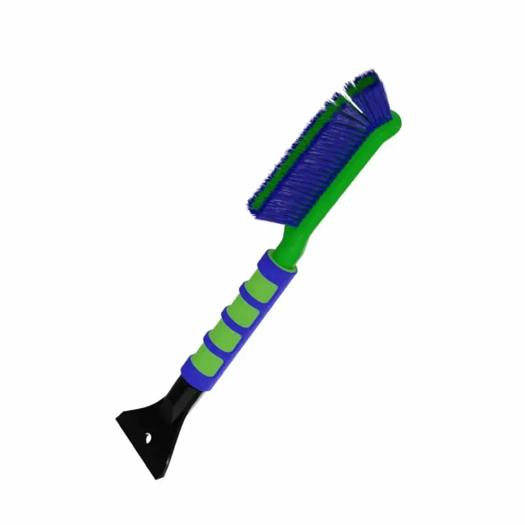 Щетка оснащена тремя рядами густой щетины, расположенной под оптимальным углом для максимальной эффективности очистки. Скребок выполнен из прочного материала с расширяющимся концом и угловыми срезами, что помогает удалять лед даже по краям стекла. Цвет в ассортименте — отгружается один товар, оттенок определяется случайным образом.