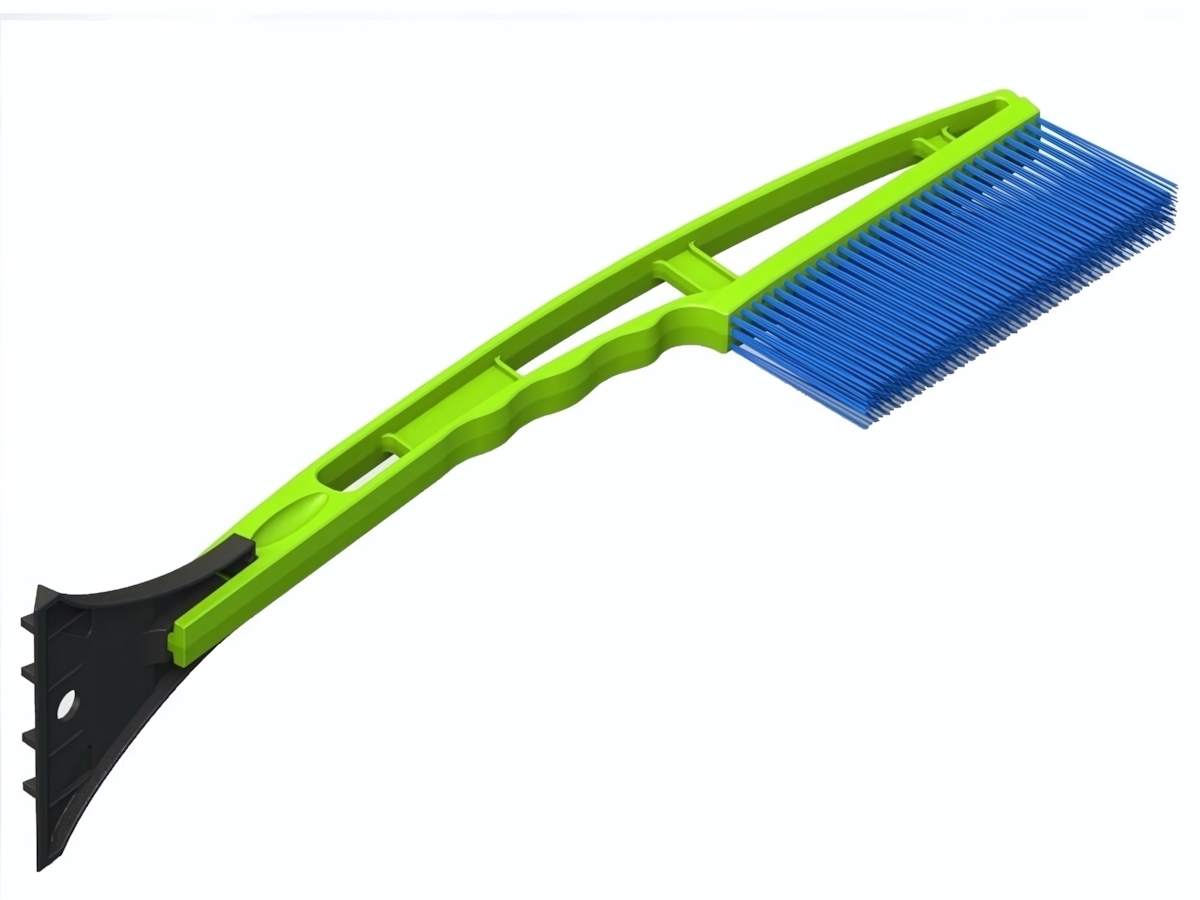 - Жёсткий скребок из прочного пластика быстро устраняет снег и засохшие пятна.