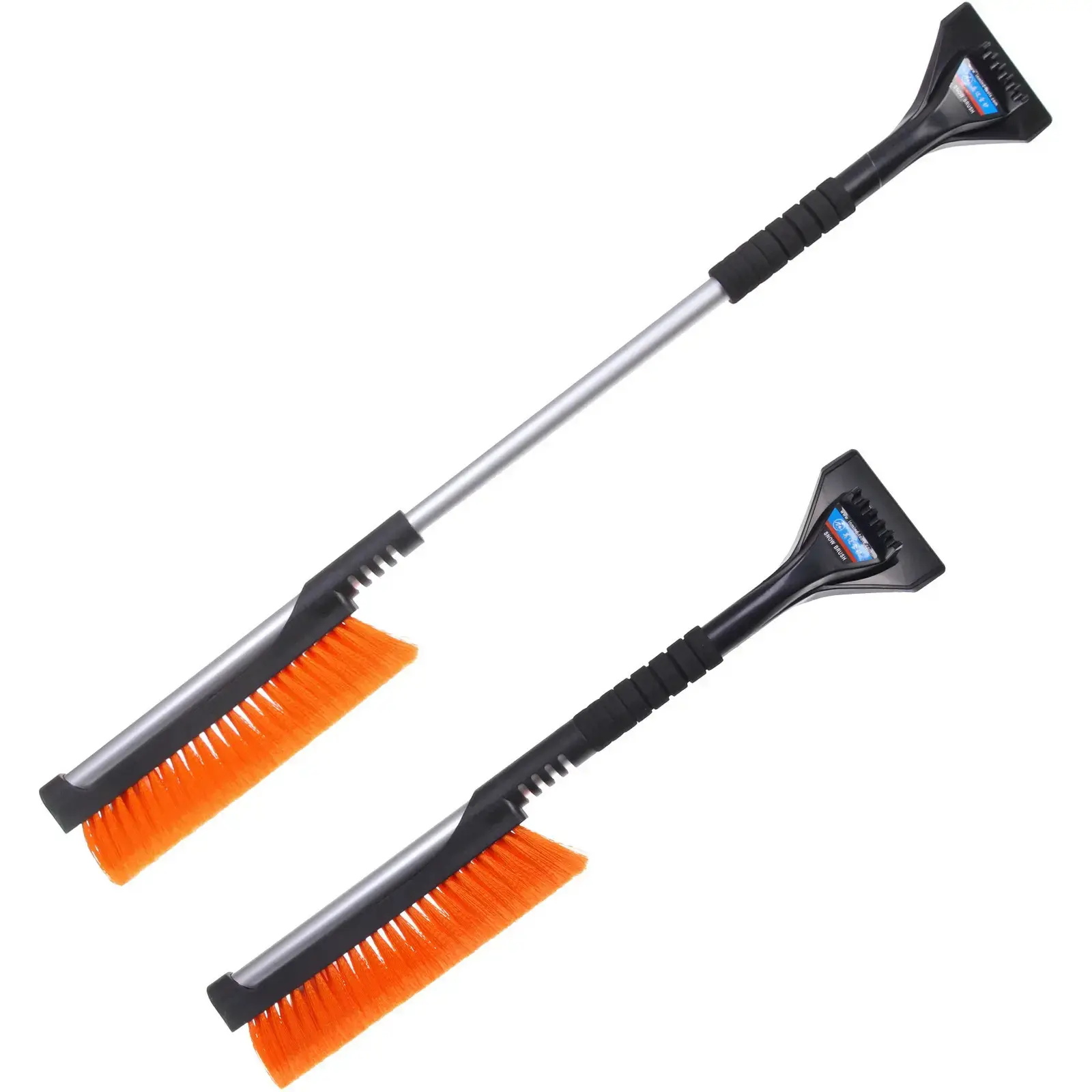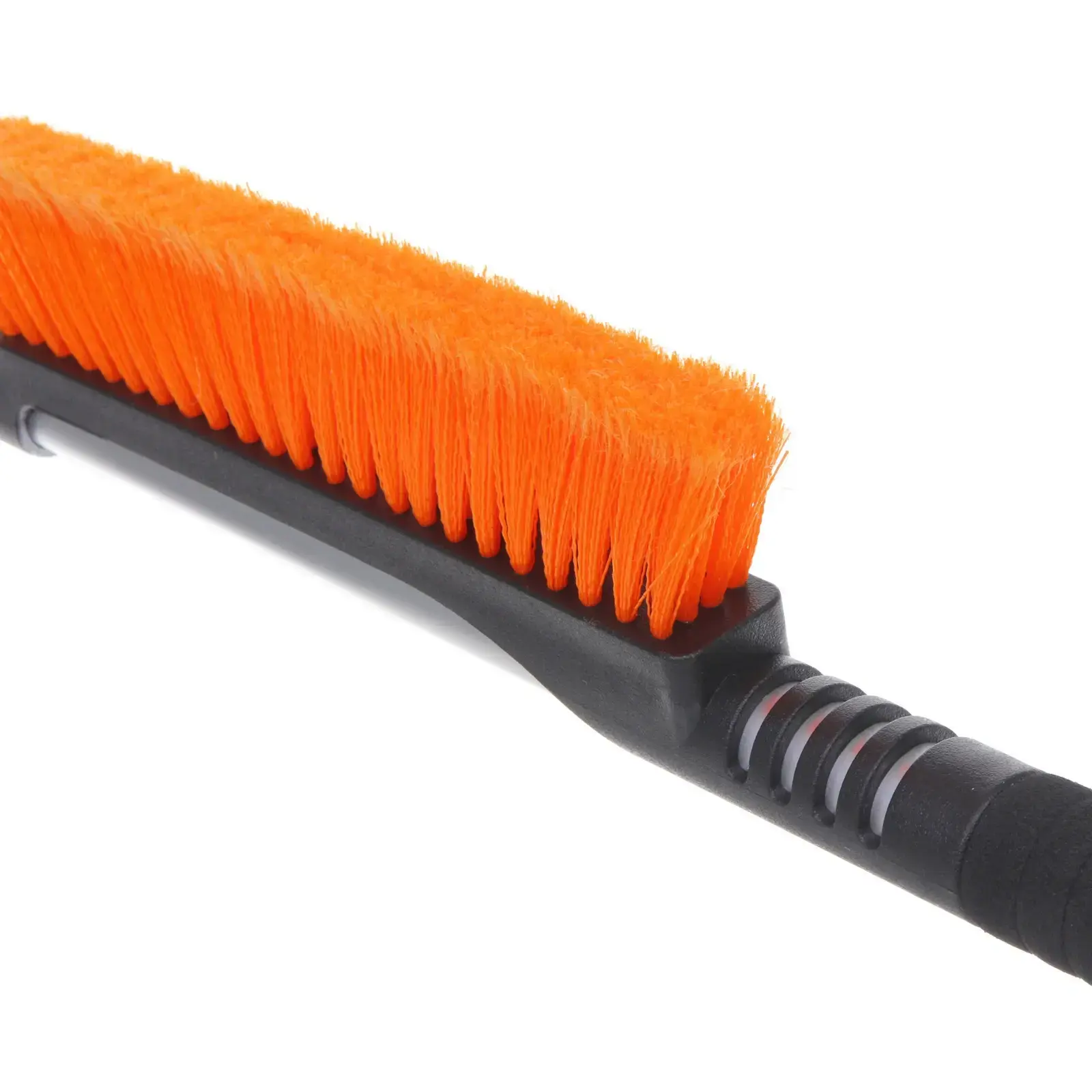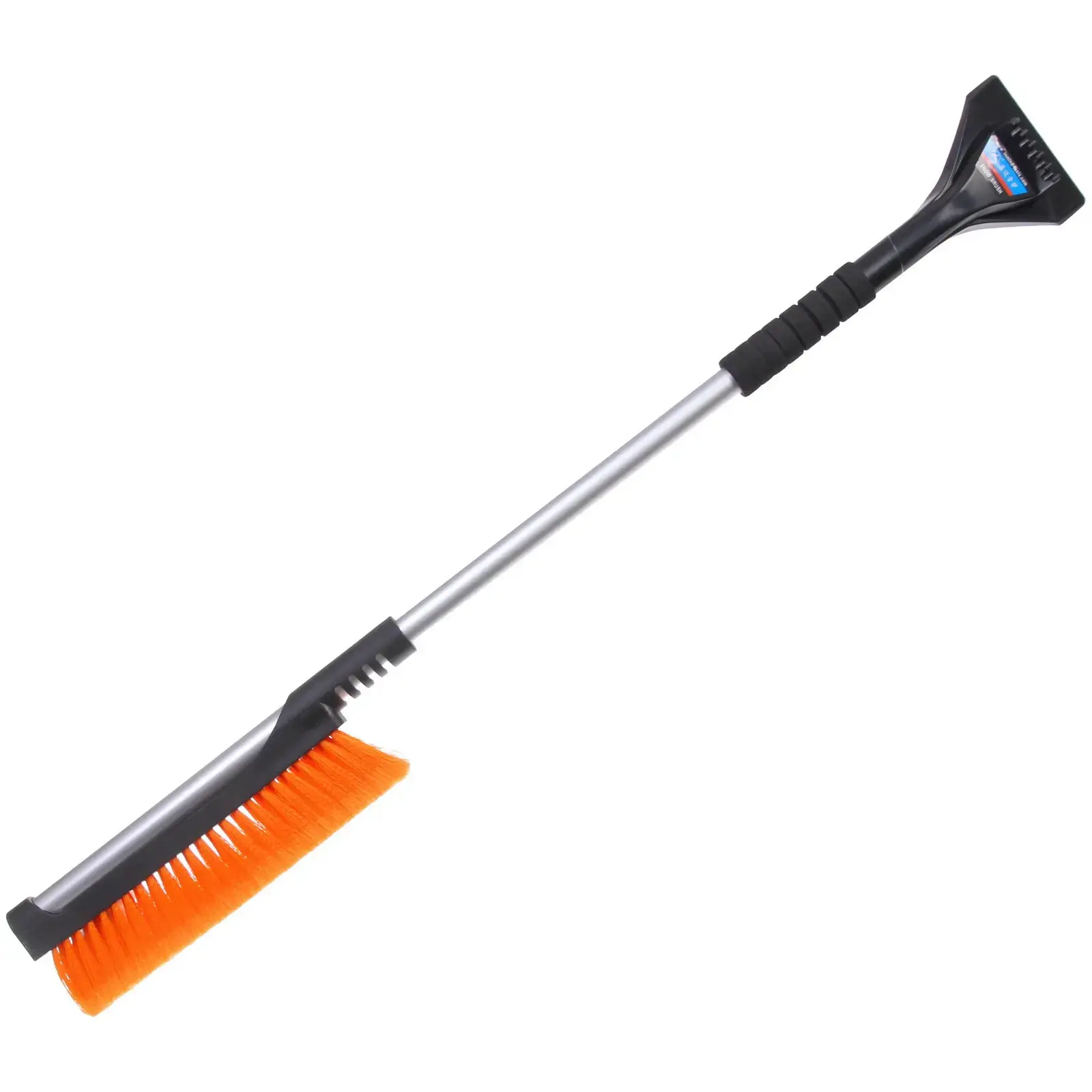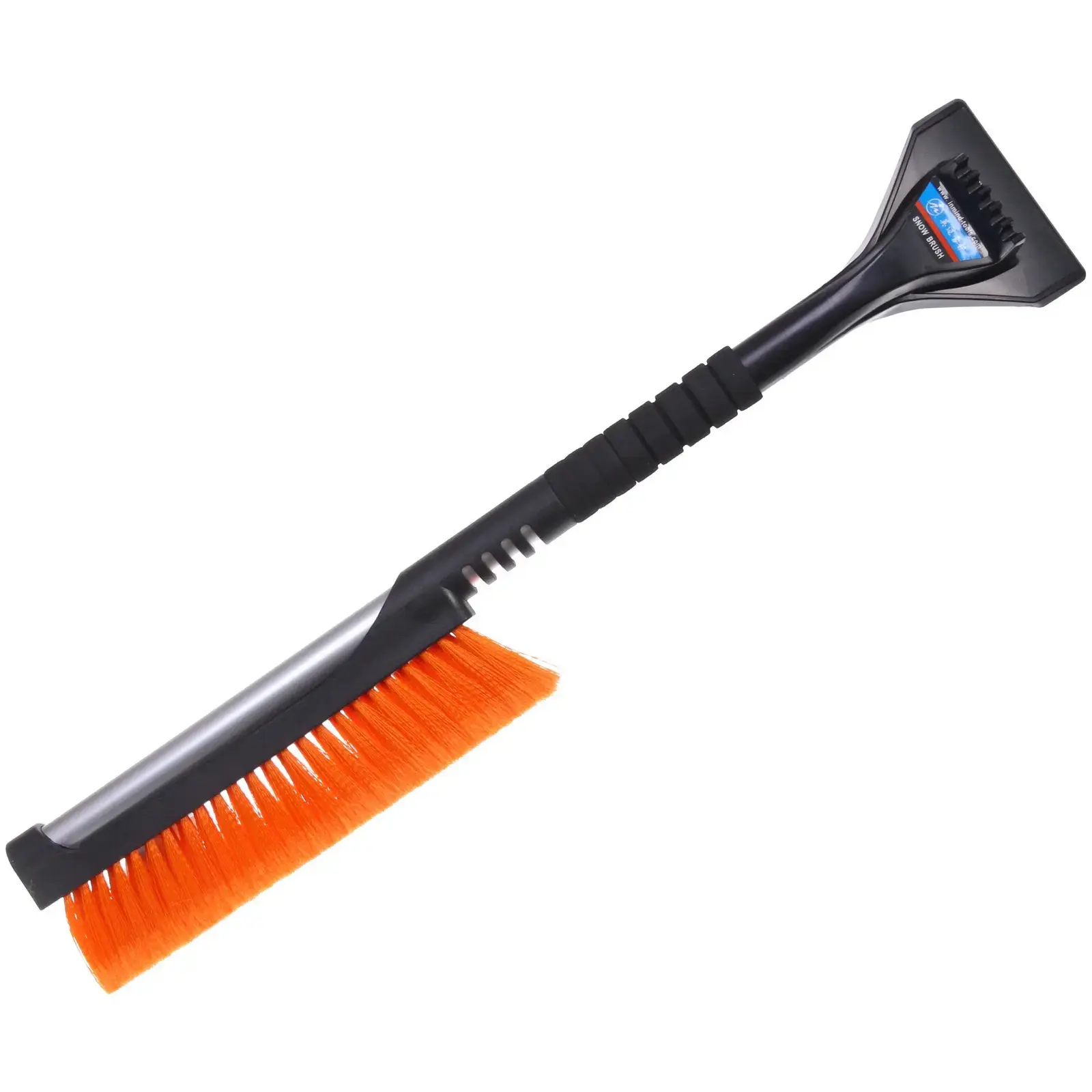 Эта щетка идеально подходит для зимних условий, когда снег и лед становятся настоящей проблемой. Она оснащена скребком длиной 11 см, который легко справляется с ледяными наледями, а длинные оранжевые щетинки эффективно удаляют снег. Ручка щетки выполнена из прочного алюминия с резиновыми вставками, что обеспечивает надежный и удобный захват.