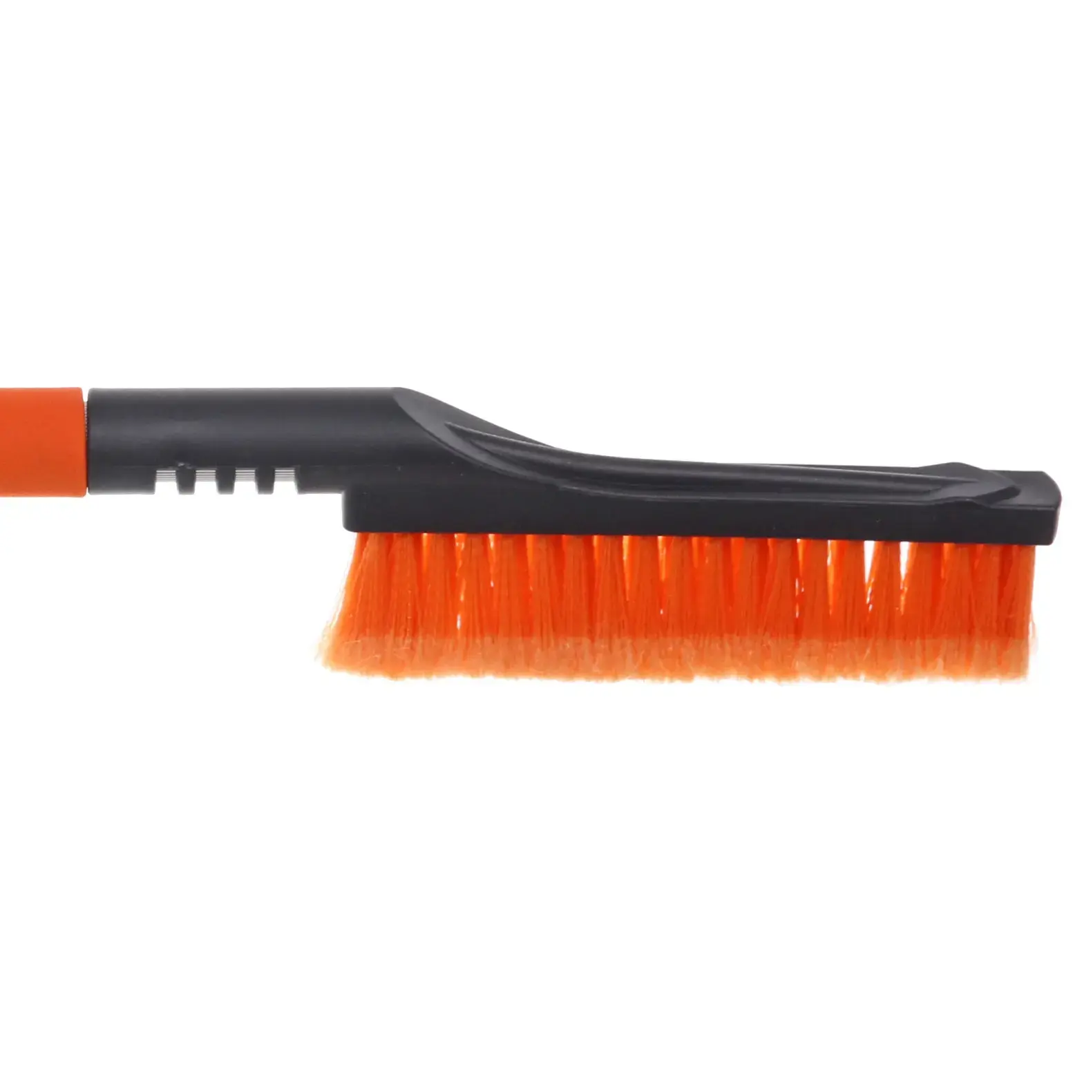 Данная щетка имеет длину 60 см, что позволяет удобно очищать большие поверхности. Скребок шириной 10 см эффективно справляется с удалением льда и снега, а оранжевый ворс щетки предназначен для смахивания снега и мелкого мусора. Инструмент подходит для использования как в городских условиях, так и в условиях загорода.
