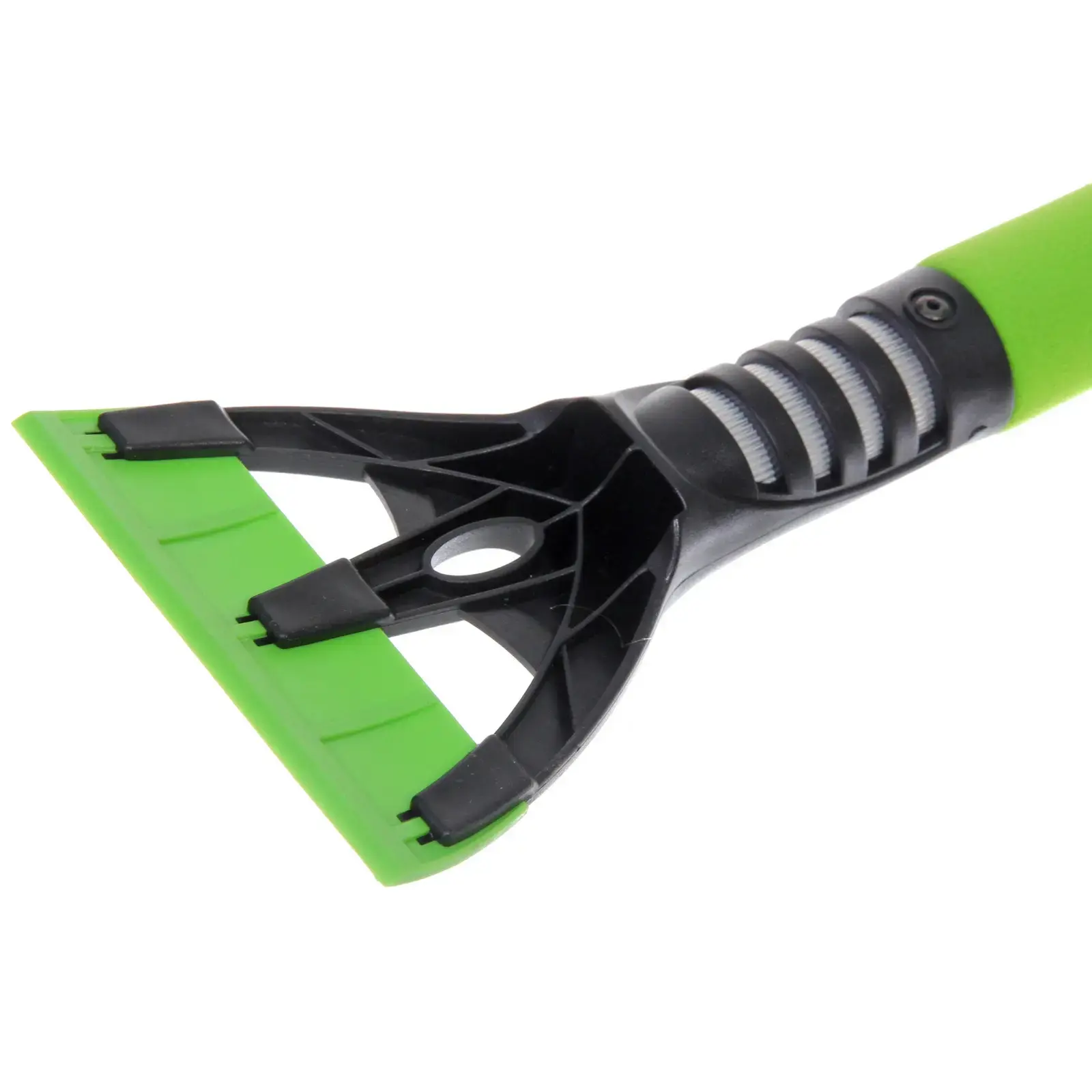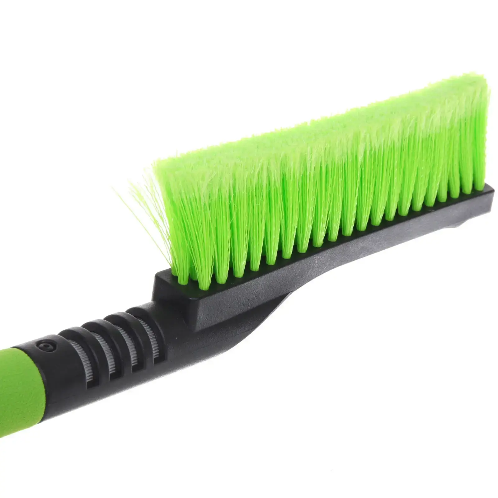 Щетка выполнена из качественных материалов: алюминия, неопрен, пластика и полипропилена. Ярко-зеленая щетина не только привлекает внимание, но и обеспечивает высокую эффективность уборки. Размеры щетки и скребка идеально подходят для работы с автомобилем, а их конструкция позволяет легко хранить инструмент в багажнике.