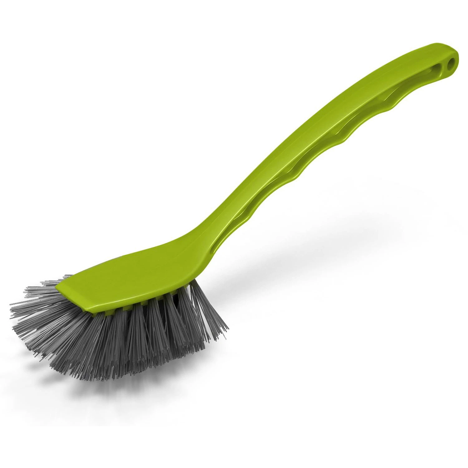 Эта щетка идеально подходит для ежедневного использования. Она предназначена для очистки различных кухонных принадлежностей, включая посуду, гриль и другие поверхности. Удобная форма ручки с рифленой поверхностью обеспечивает надежный захват, что делает процесс мытья более комфортным.
