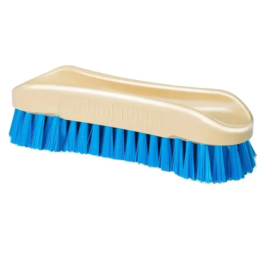 Щетка изготовлена из качественных материалов, устойчивых к деформации. Яркий дизайн сочетает бежевый корпус с контрастной голубой щетиной, что делает инструмент заметным среди домашних принадлежностей. Продуманная конструкция обеспечивает долгий срок службы даже при интенсивном использовании.