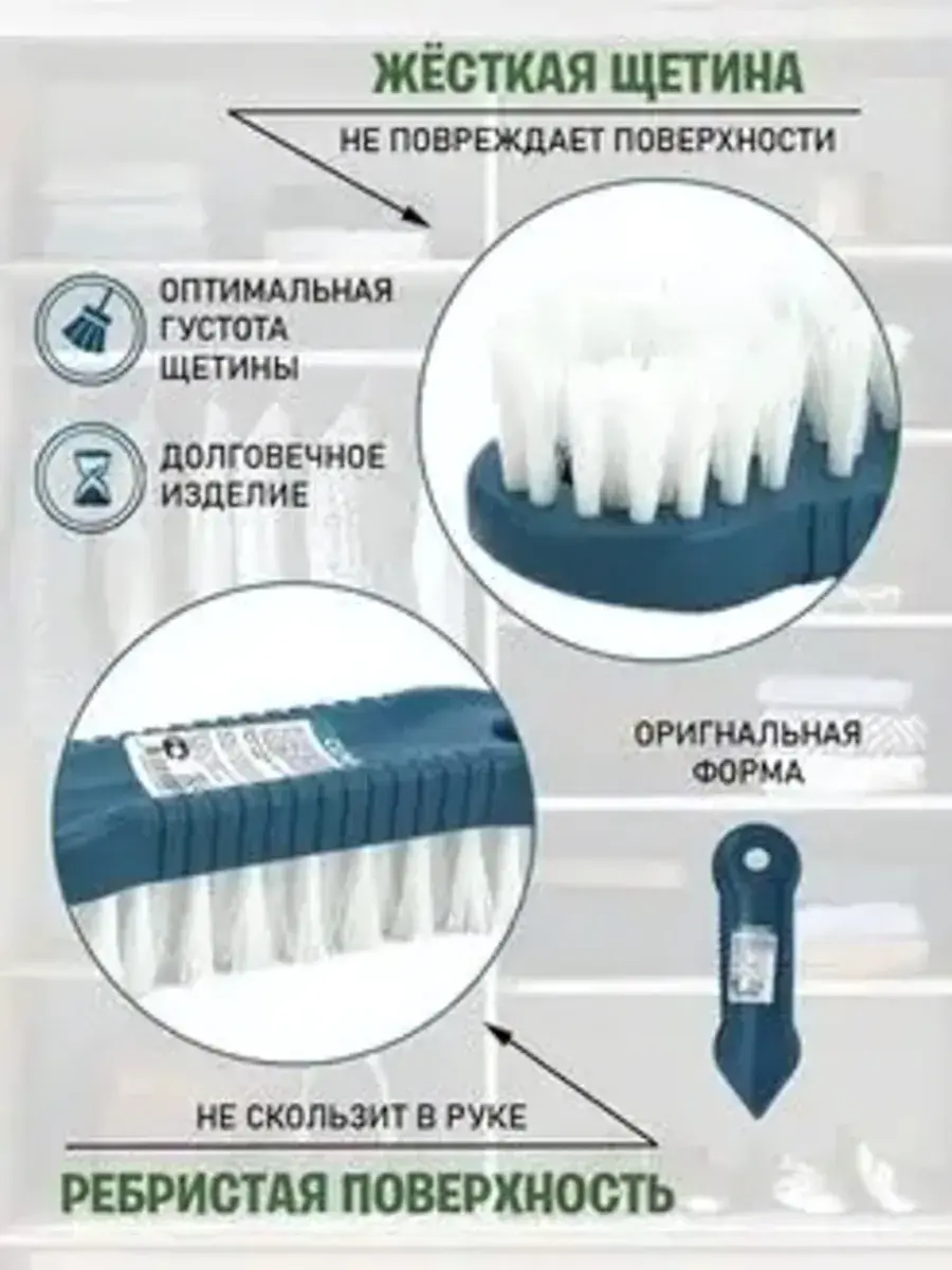 - Жесткая щетина эффективно удаляет загрязнения, не повреждая ткань