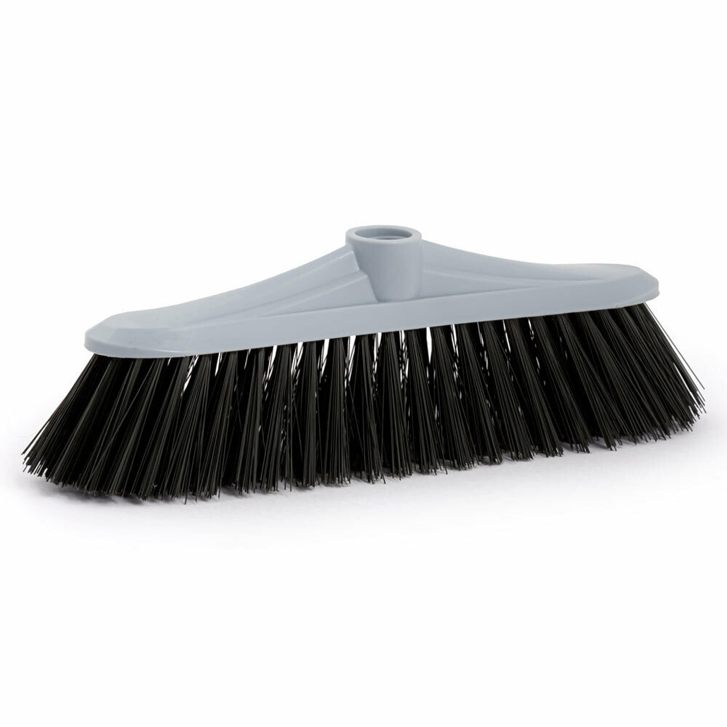 Щетка отлично справляется с уборкой пыли, мусора, листвы, земли и крупных загрязнений на полу, террасе, в гараже или в производственном помещении. Благодаря универсальному отверстию для крепления, щетка совместима с обычными алюминиевыми и пластиковыми черенками — вы можете использовать уже имеющийся черенок без дополнительных затрат.