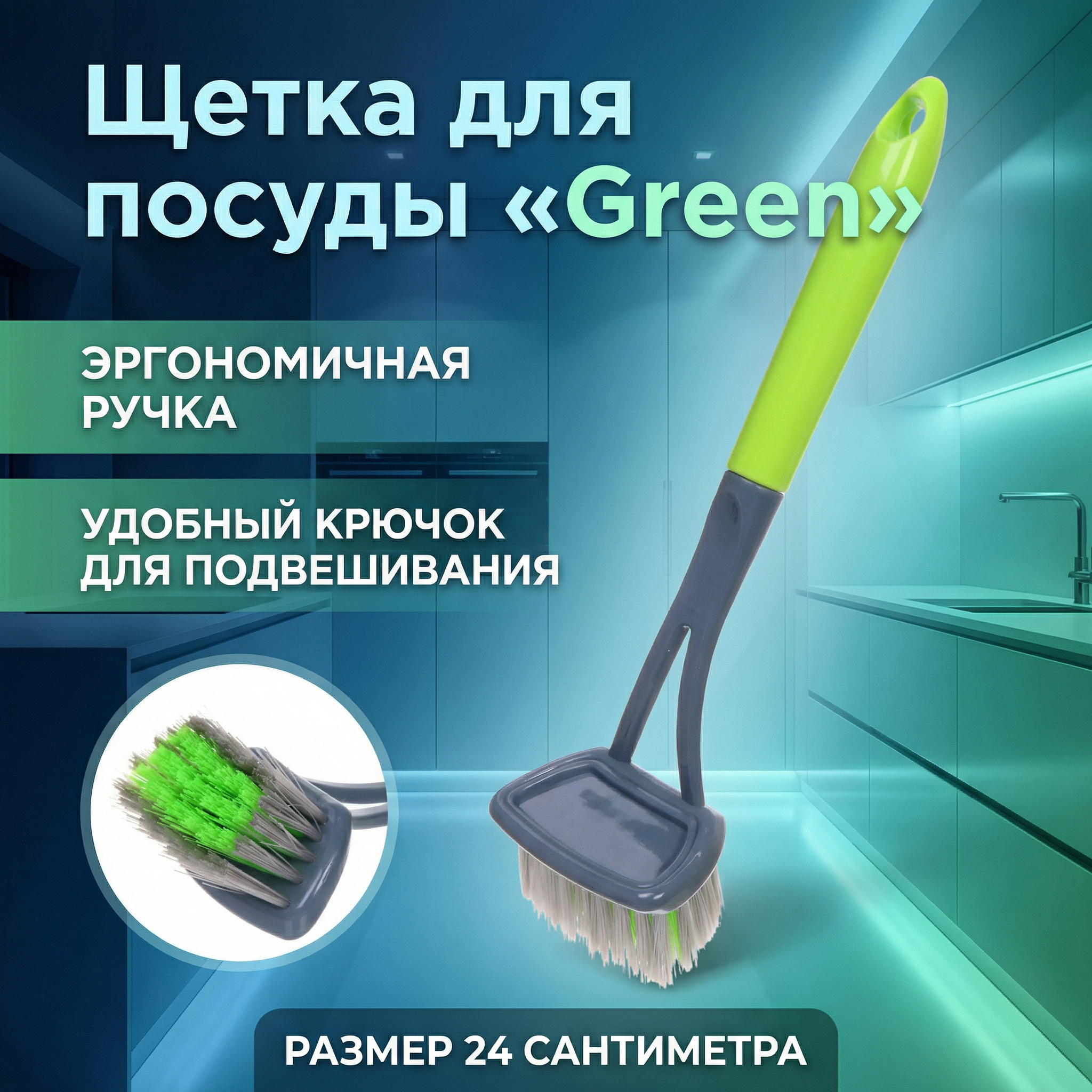 Щетка для посуды «Green» длиной 24 см — это ваш надежный помощник на кухне, который обеспечит комфорт и высокую эффективность в процессе уборки. Благодаря удобной ручке и качественным материалам, вы сможете легко очищать кастрюли, сковородки и противни, не беспокоясь о повреждении рук от чистящих средств.