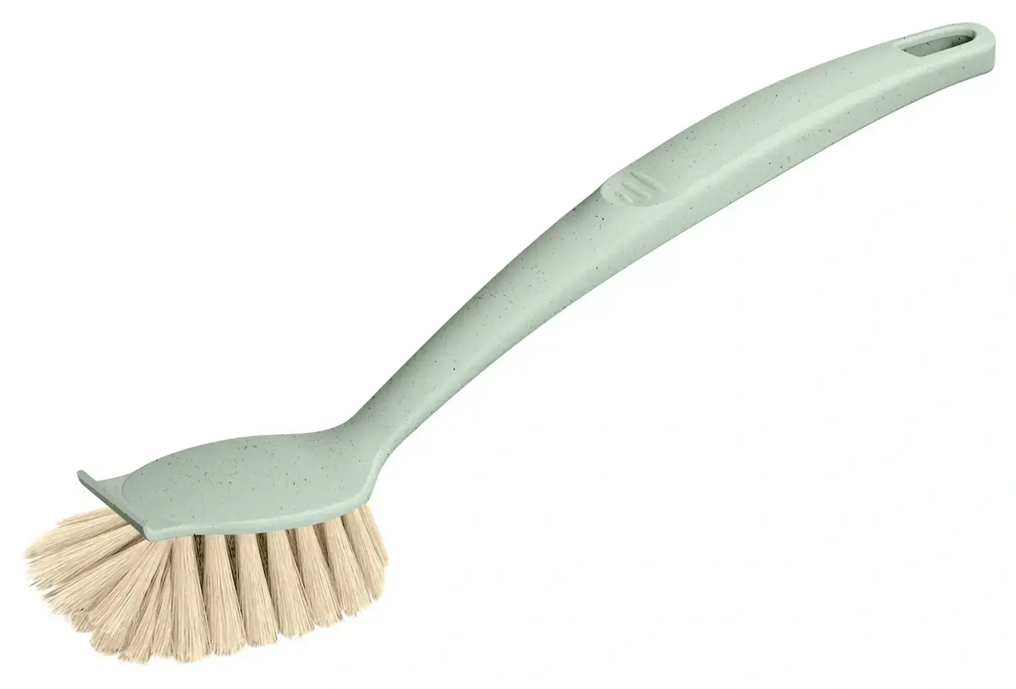Эта щетка подходит для мытья кастрюль, сковородок, тарелок, стаканов и бутылок. Эргономичная ручка с углублением обеспечивает надежный захват, а отверстие для подвешивания позволяет удобно хранить щетку на крючке. Специальное круговое расположение щетины гарантирует, что вы сможете очистить даже самые труднодоступные места.