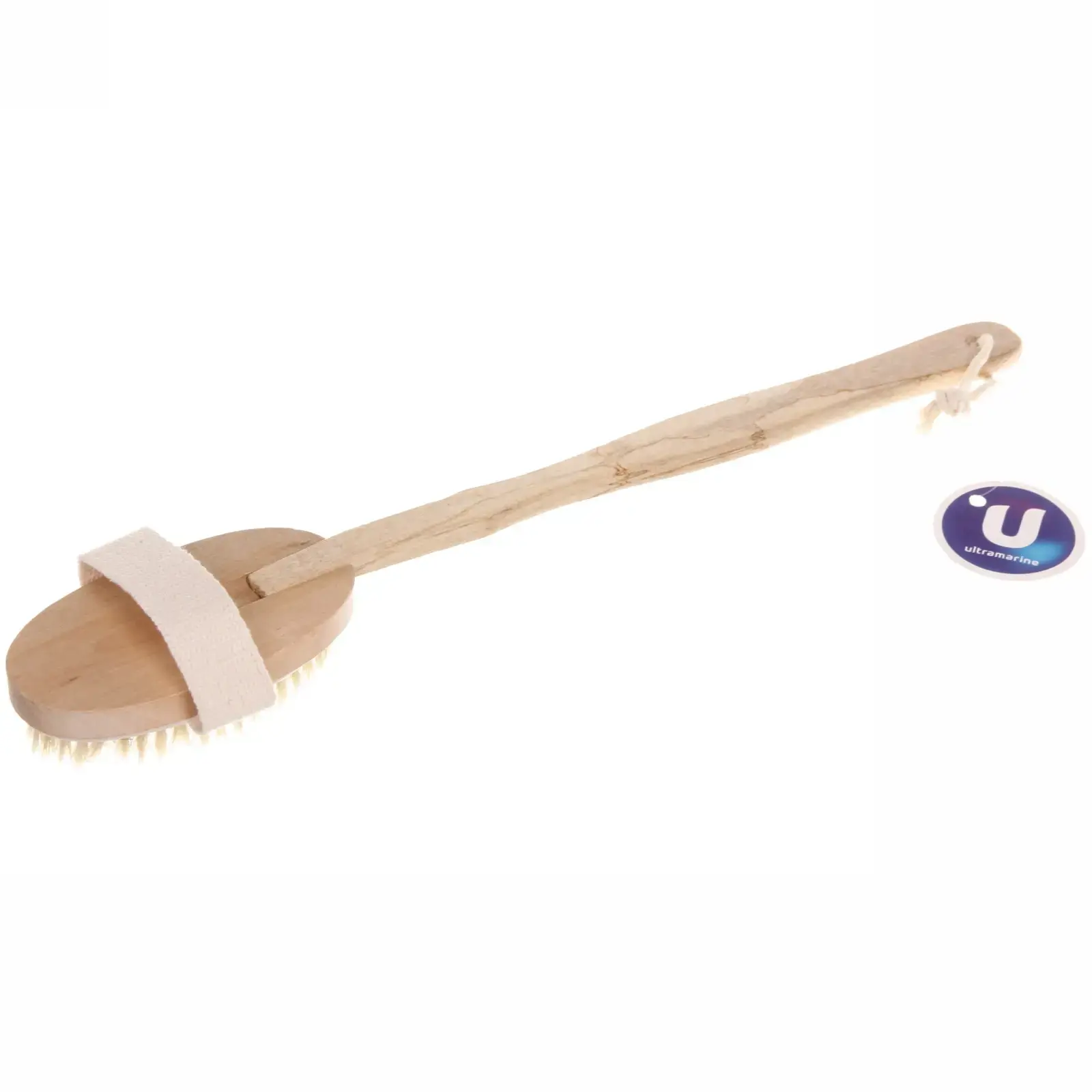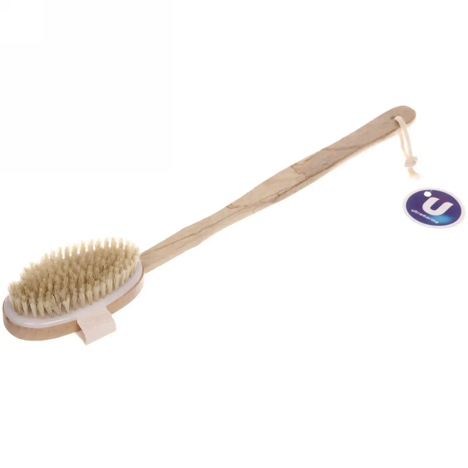 Рабочая поверхность 6,5 см оптимальна для обработки любых участков тела. Съемная ручка длиной 33 см позволяет менять угол воздействия, а текстильная петля предотвращает скольжение во влажных условиях. Натуральная щетина длиной 1,5 см мягко удаляет ороговевшие клетки, не травмируя эпидермис.