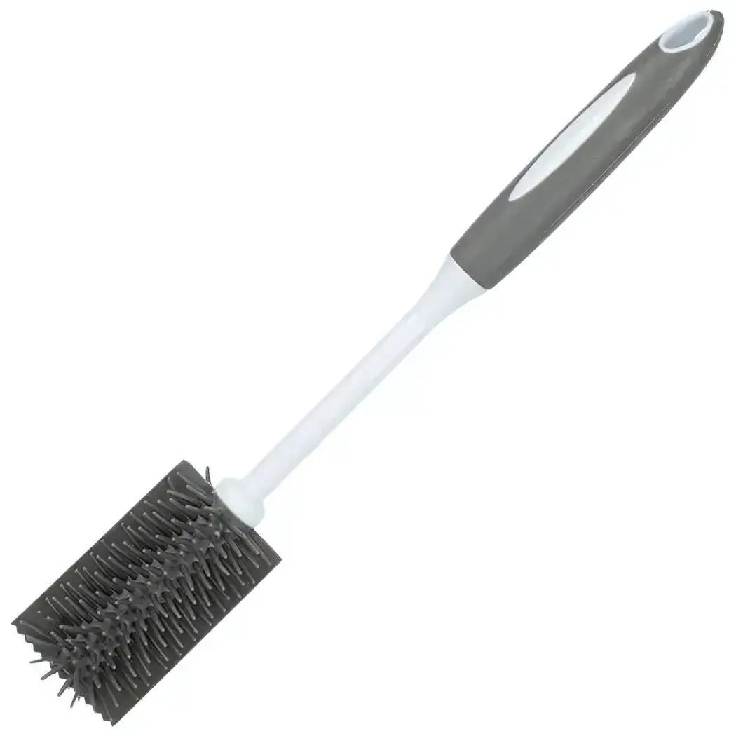 Щетка-ершик с гибкой конструкцией обеспечивает эффективное удаление загрязнений в узких местах и труднодоступных углах. Эргономичная форма ручки создает комфортный захват даже при длительном использовании.