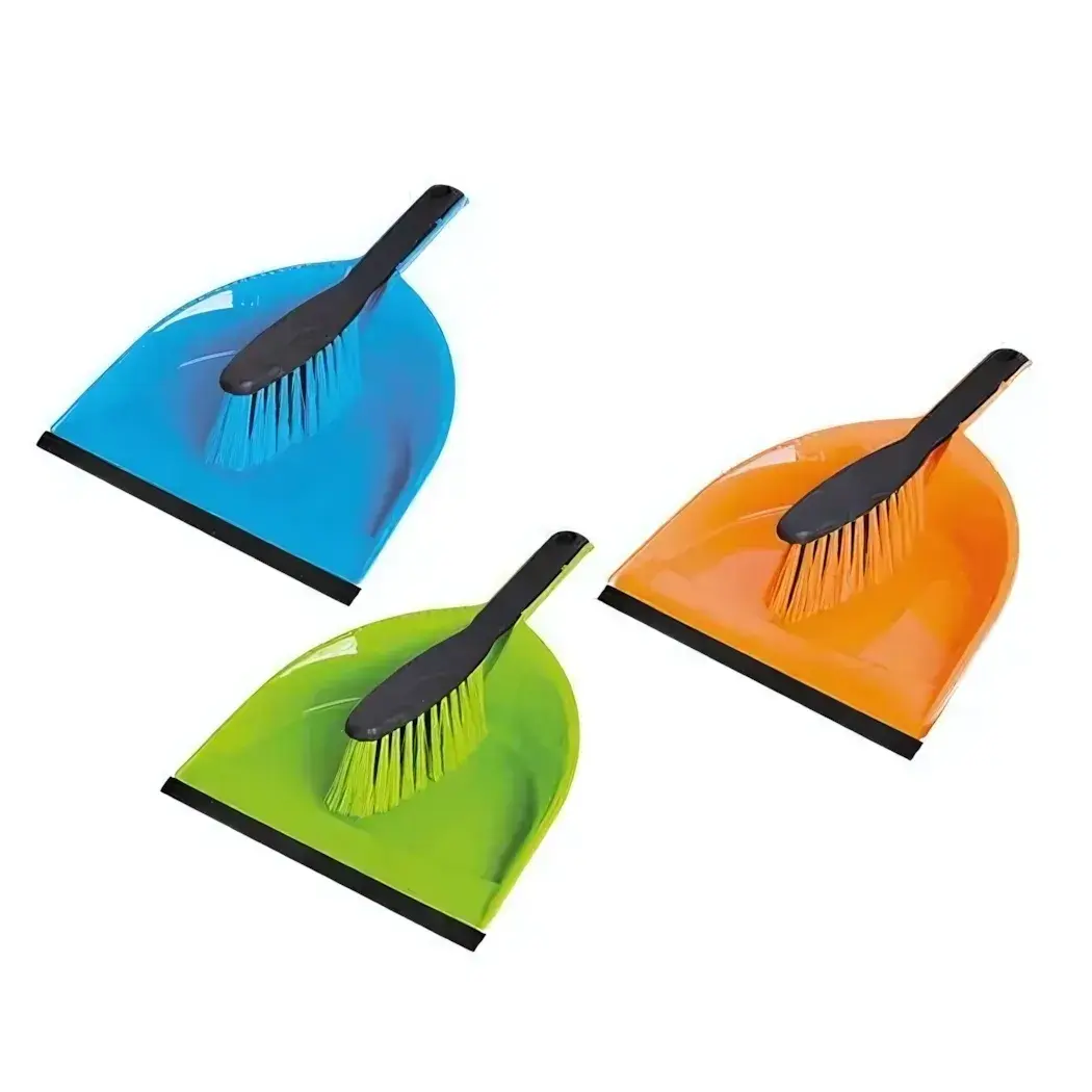 Цвет товара отгружается в ассортименте (синий, зеленый или оранжевый) — вы получите один случайный вариант из доступных. Размер совка: 35×18 см (оптимален для большинства типов уборочного инвентаря). Набор подходит для использования в домашних условиях, офисах и коммерческих помещениях.
