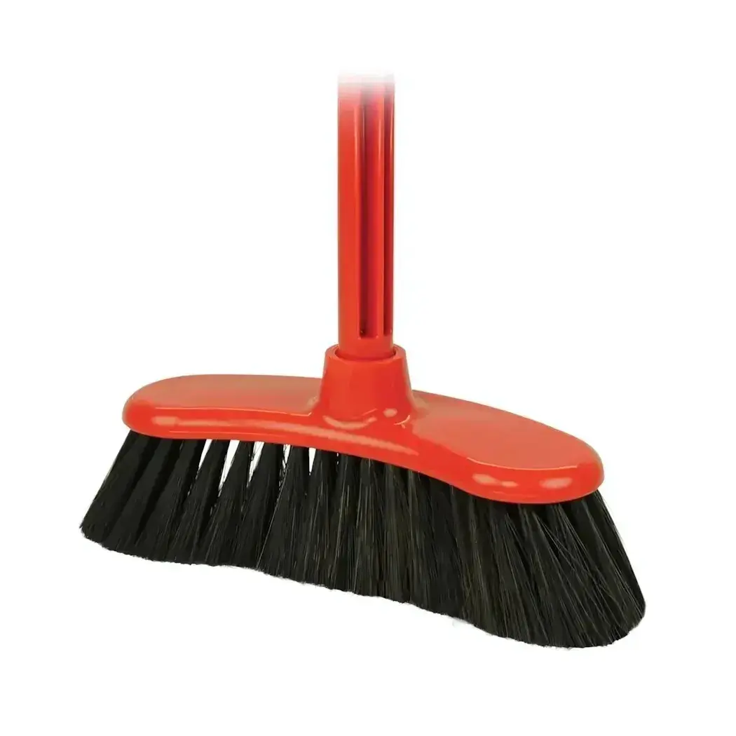 Щетка для пола с длинным черенком, широкая синтетическая щетина, цвет ручки красный