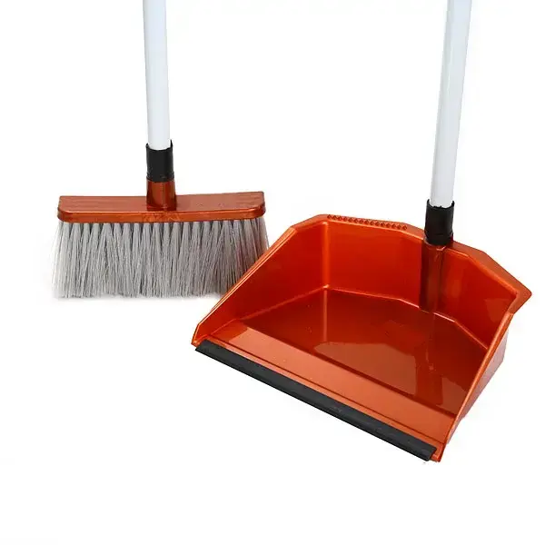 Совок и щетка выполнены в ярком оранжевом цвете, что добавляет яркости в ваш интерьер. Длинные ручки обеспечивают удобство использования, а гладкая поверхность материалов облегчает уход за ними. Размеры изделия стандартные для уборочных инструментов, что делает их универсальными для любого дома.
