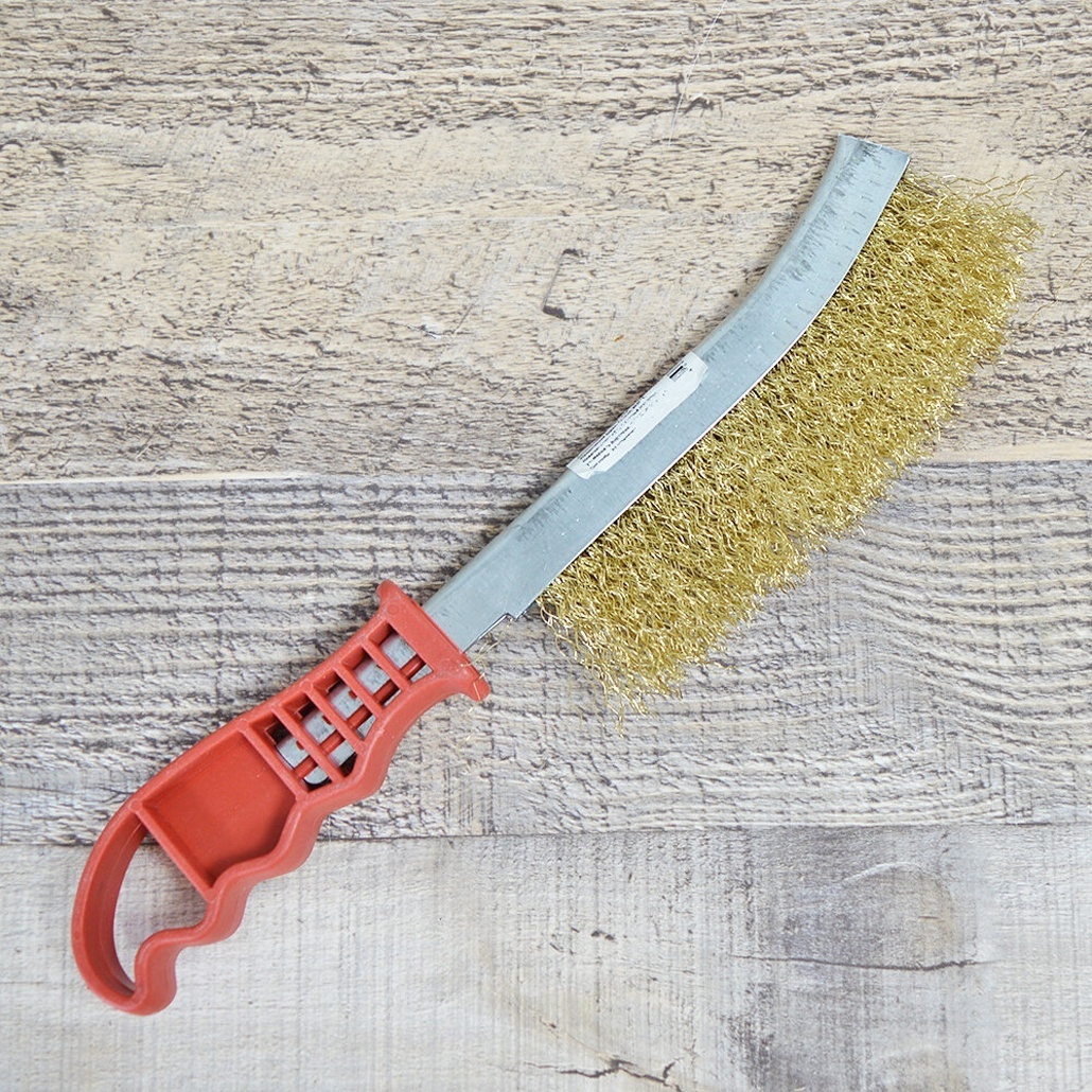 Металлическая щетка длиной 22,5 см с эргономичной пластиковой ручкой — надежный инструмент для быстрой и качественной очистки металлических поверхностей. Золотистая металлическая щетина эффективно справляется с удалением ржавчины, старой краски и прочих загрязнений, экономя ваши силы и время.