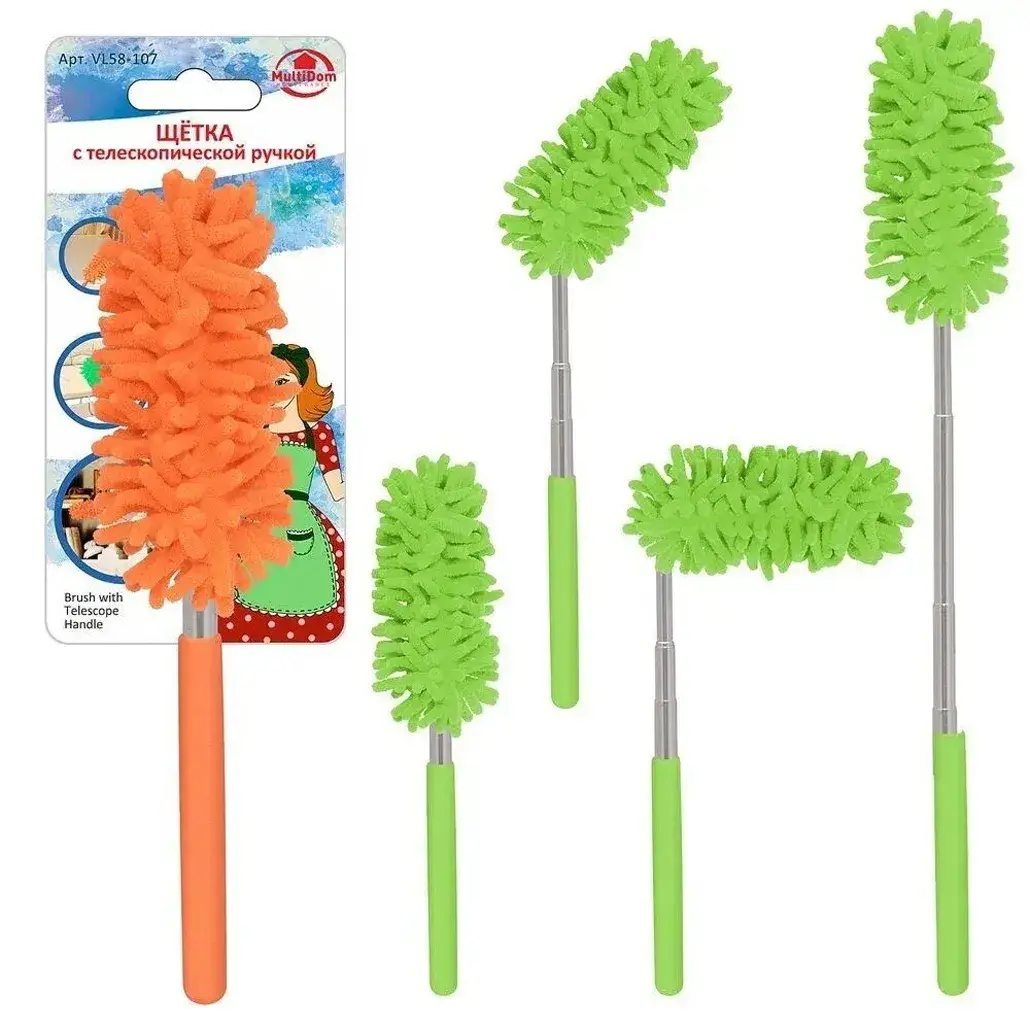 Регулируемая телескопическая ручка позволяет легко добраться до труднодоступных мест без лишних усилий. Мягкие полиэстеровые ворсинки бережно очищают поверхности, не оставляя царапин.