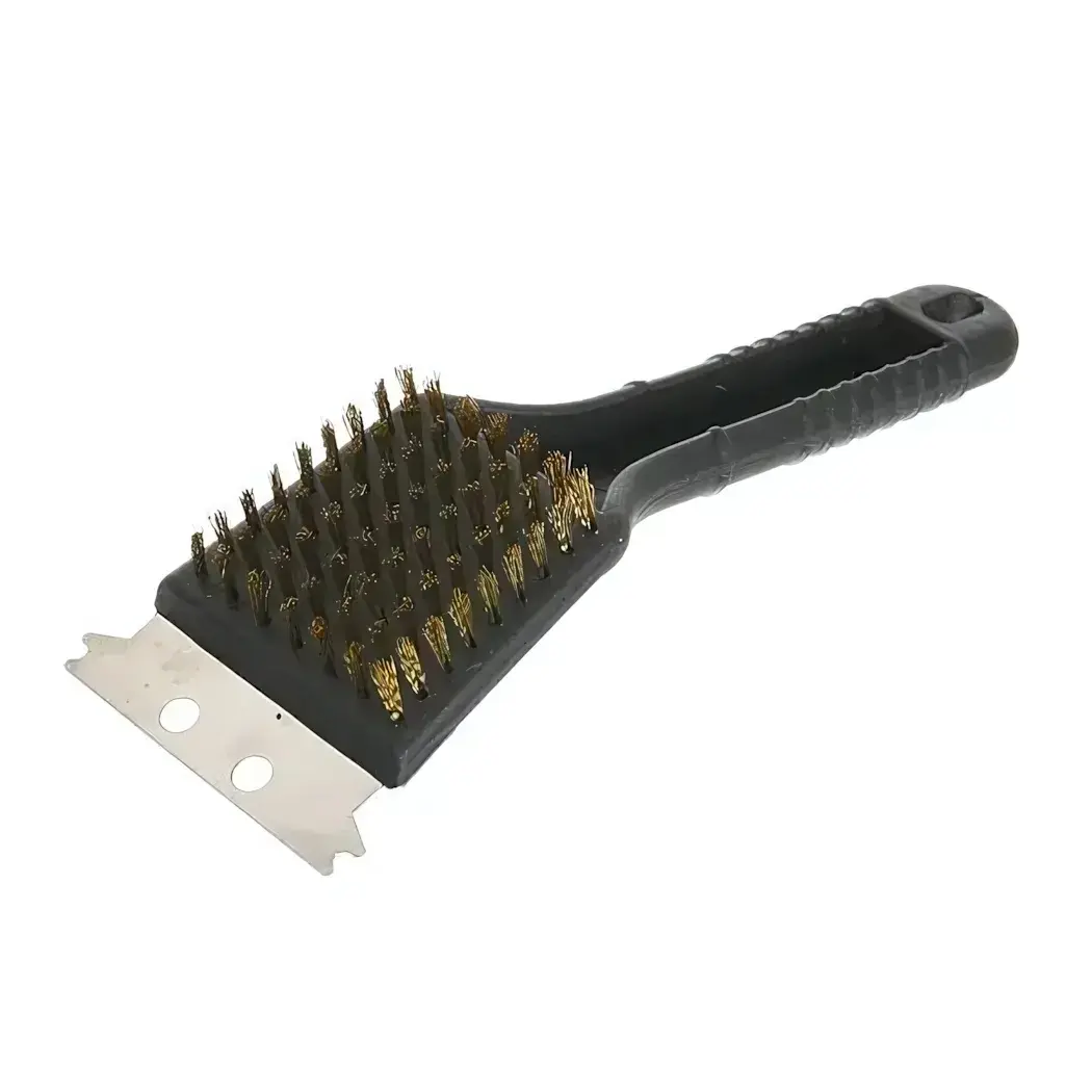 Комбинированная щетка-скребок с металлическими щетинами и эргономичным дизайном превратит уход за барбекю в быстрый и комфортный процесс. Двойная функциональность позволяет удалять как свежие загрязнения, так и застарелый нагар без лишних усилий.