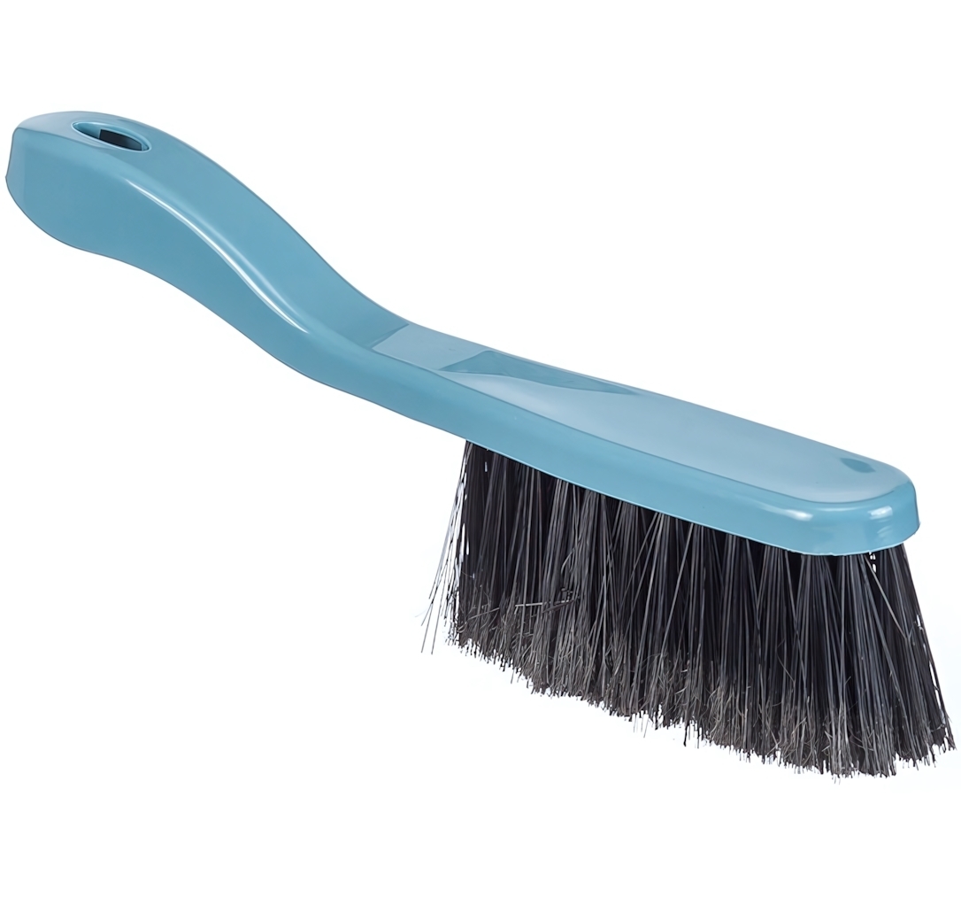 Материал ручки – высококачественный пластик серо-голубого цвета, который легко моется и устойчив к воздействию влаги и грязи. Щетинки изготовлены из синтетического материала с жесткой структурой, что позволяет эффективно удалять пыль, грязь и мусор с различных поверхностей.