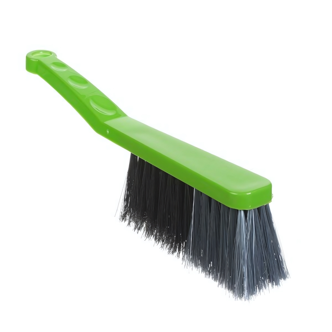 Плотная синтетическая щетина с ворсом разной длины хорошо собирает пыль и мелкий мусор, не разбрасывая его по сторонам. Щетка подходит для уборки пола, столешниц, подоконников, полок и других поверхностей в квартире, доме или на даче. Ярко-зеленый цвет делает изделие заметным среди хозяйственных принадлежностей и добавляет аккуратности в зоне хранения.