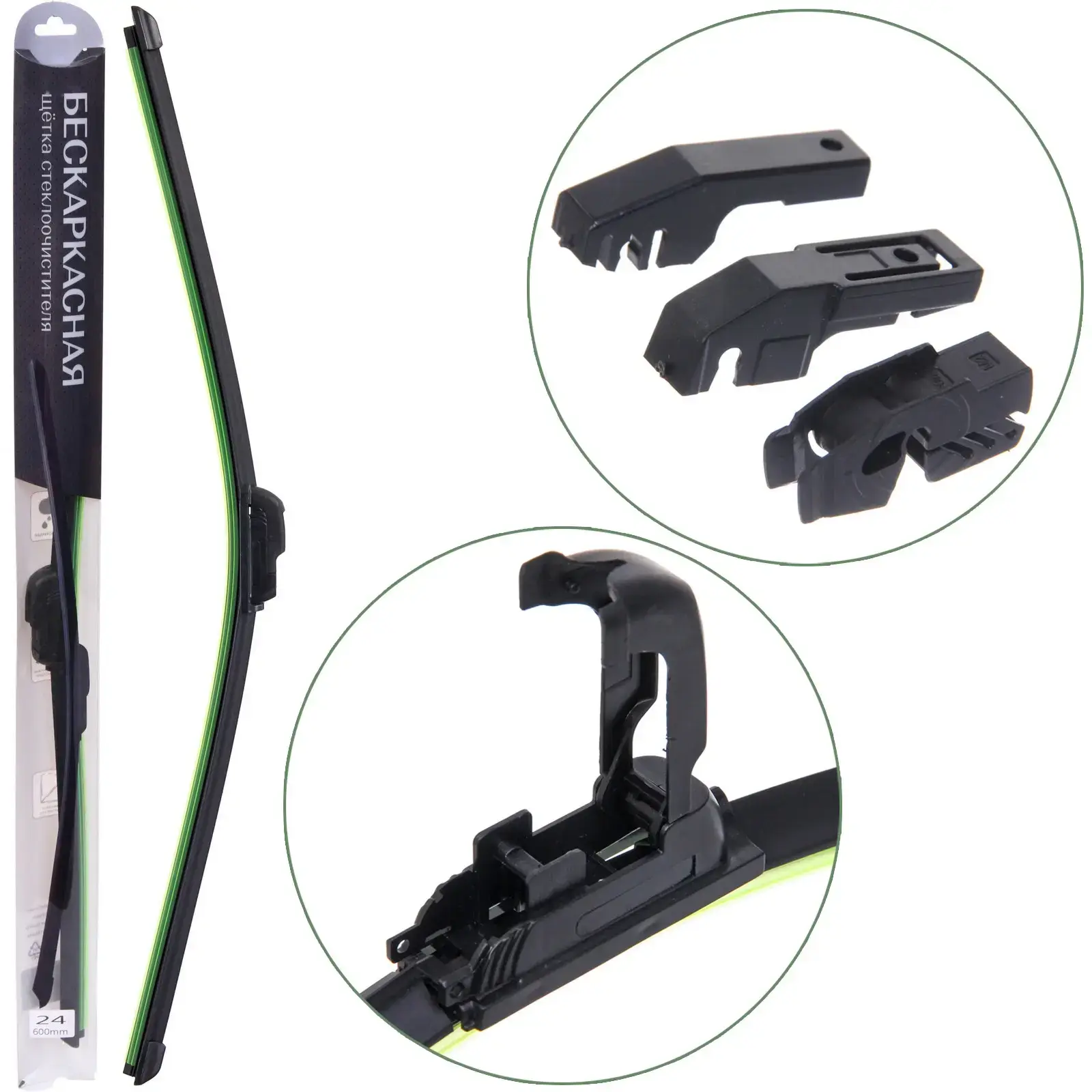 Почему стоит выбрать именно эту щетку? Во-первых, ее бескаркасная конструкция обеспечивает равномерное давление на стекло, что позволяет избежать пропусков и улучшает качество очистки. Во-вторых, щетка выполнена из прочных материалов: металл, пластик и резина, что гарантирует долговечность и надежность. Вы можете быть уверены, что она прослужит вам долго, даже при интенсивном использовании.