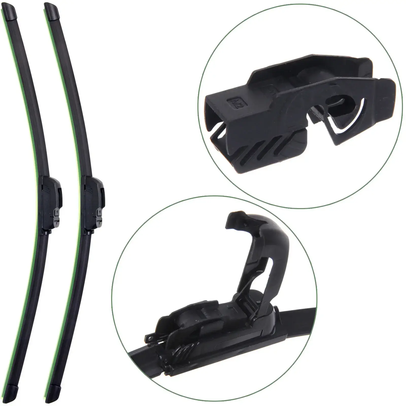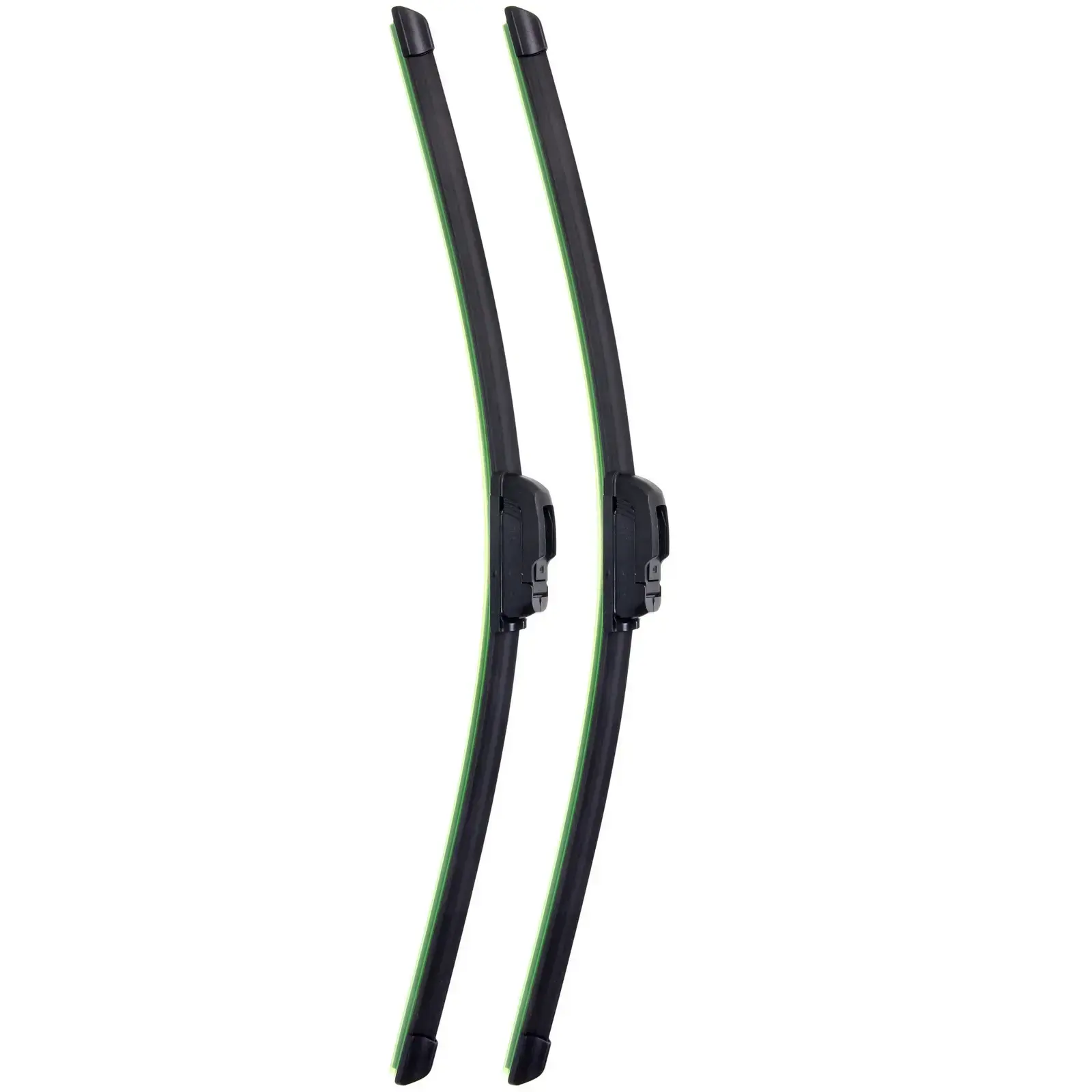 Размер каждой щетки: 500 мм (20 дюймов). Материалы: высококачественная резина, пластик и металл. Цветовое решение: классическое сочетание черного с зеленым акцентом.