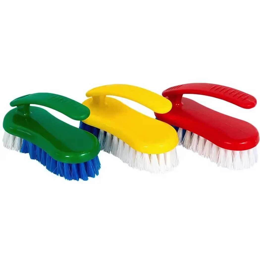 Щетка для уборки с эргономичной рукояткой, пластик/синтетика, цвета в ассортименте (зеленый, желтый, красный)