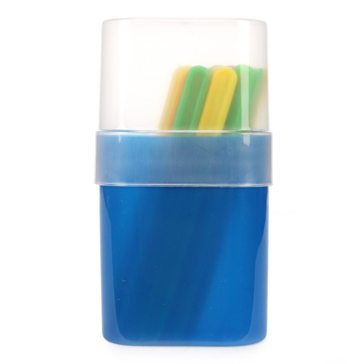Комплект поставляется в удобной пластиковой коробке овальной формы синего цвета. Размеры коробки: диаметр 12 см, высота 5 см. Прозрачная крышка позволяет легко контролировать наличие всех элементов.